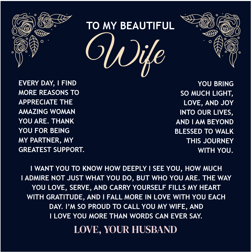 Celebrate your wife with a necklace full of meaning. A gift that’s perfect for a birthday, or christmas, and will stay in her heart forever.