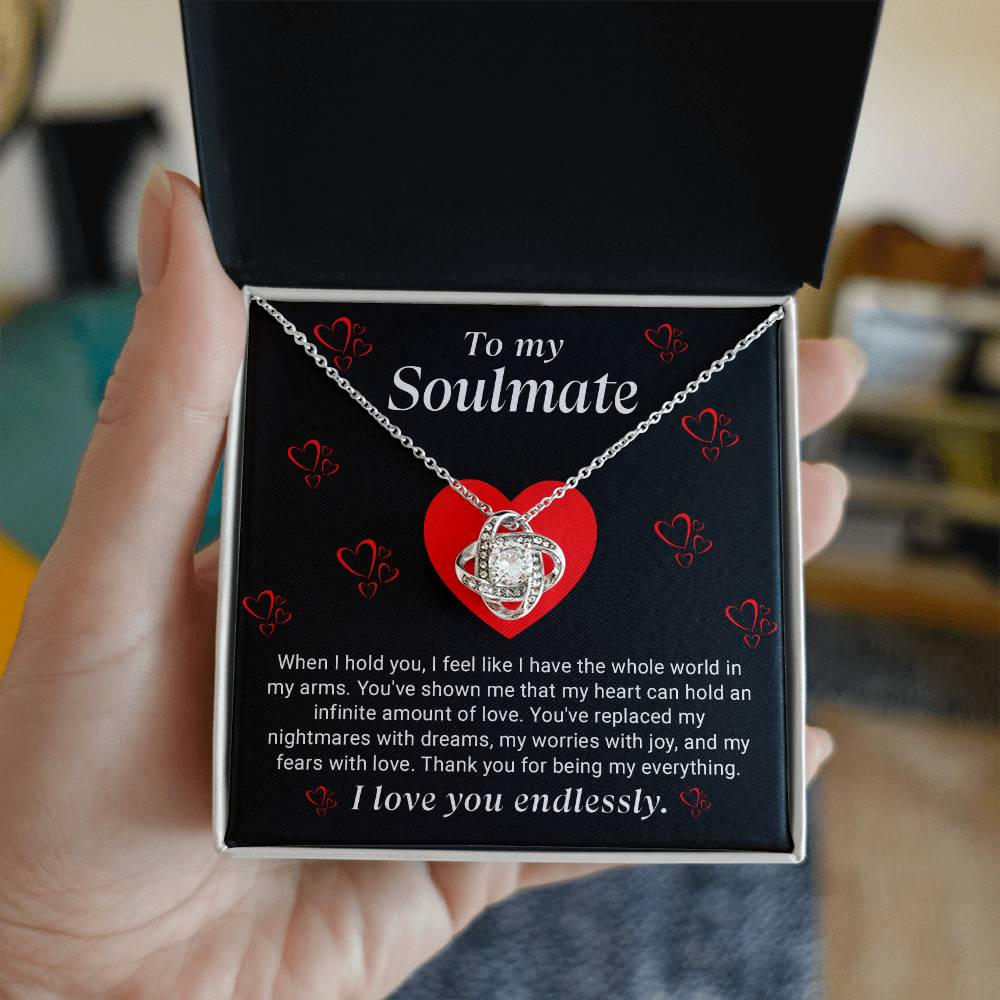 To My Soulmate Love Knot Necklace - Heartfelt Jewelry Gift for Wife or Girlfriend - Perfect for Anniversaries and Valentine's Day