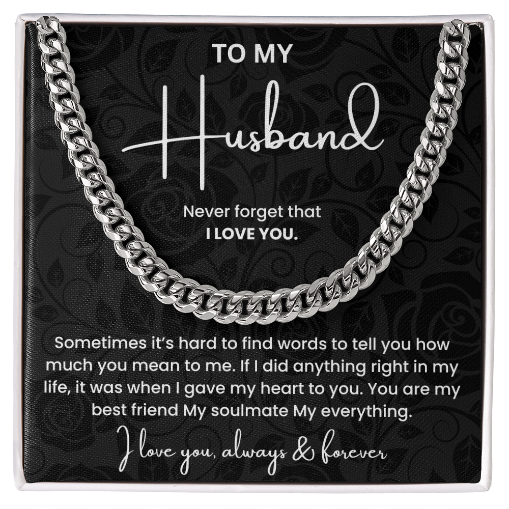 To My Husband Necklace Stainless Steel Cuban Link Love Gift