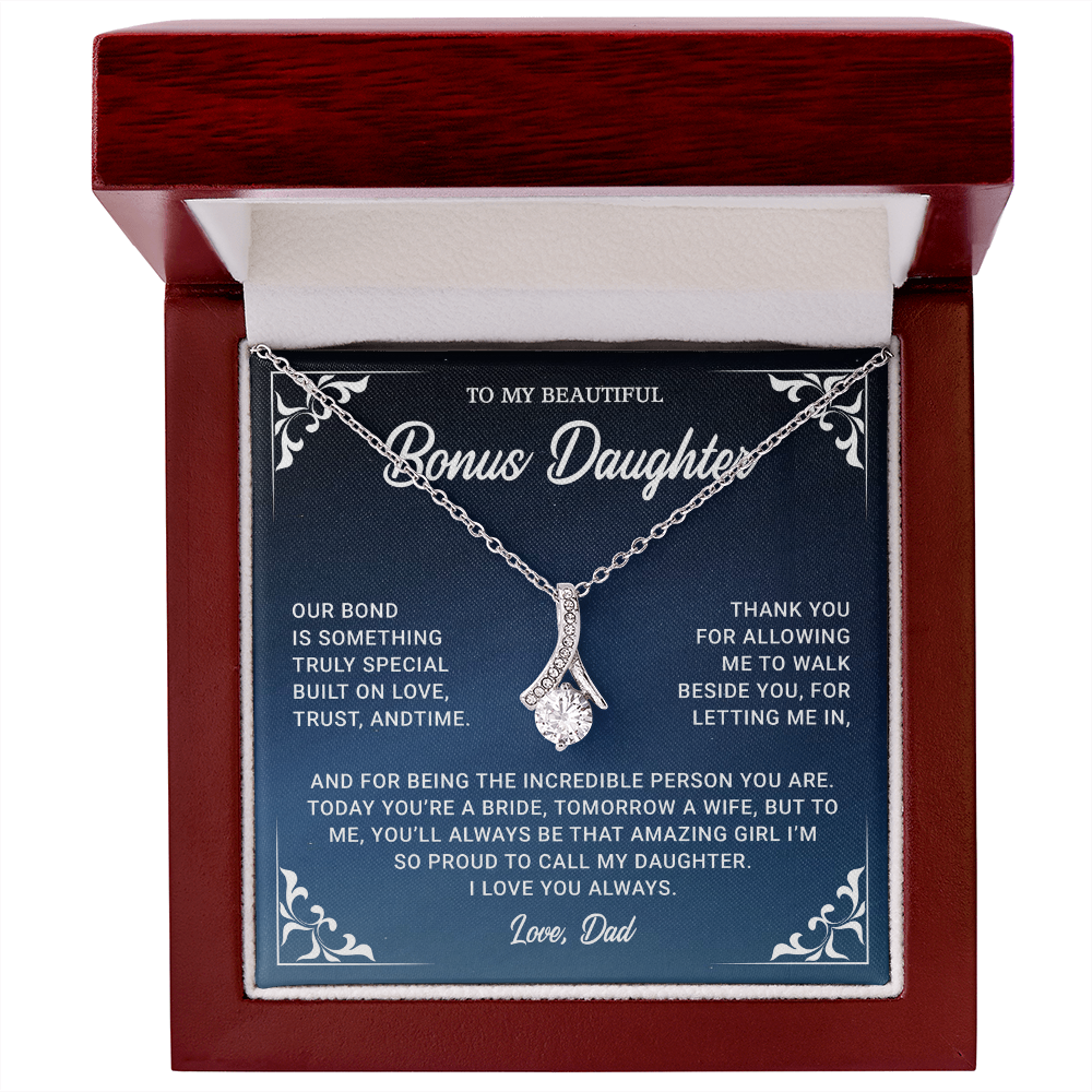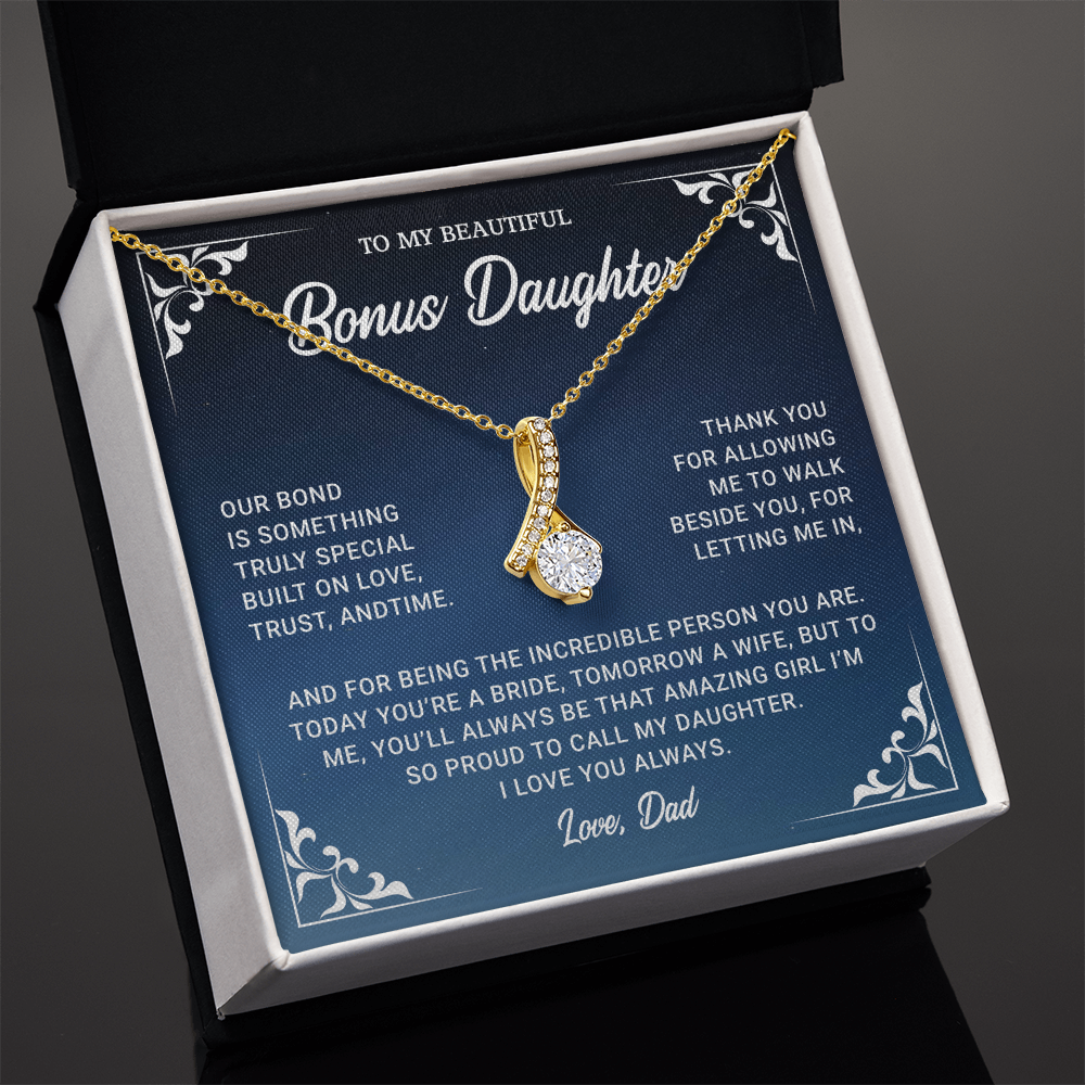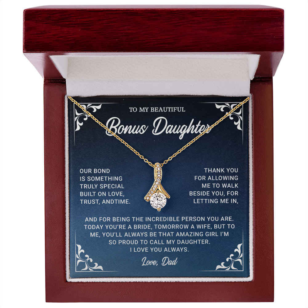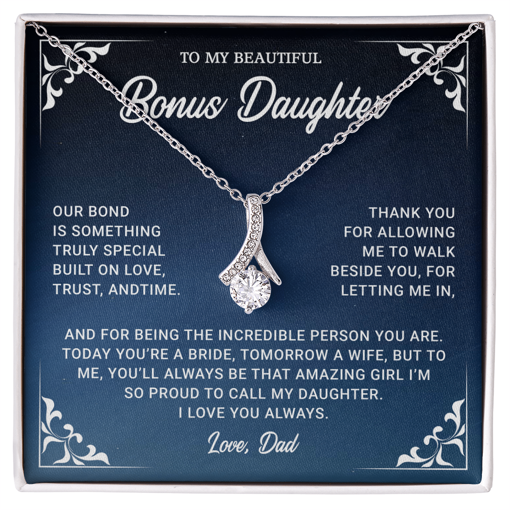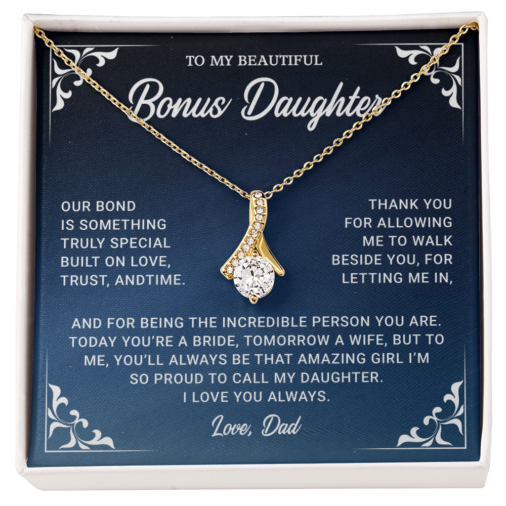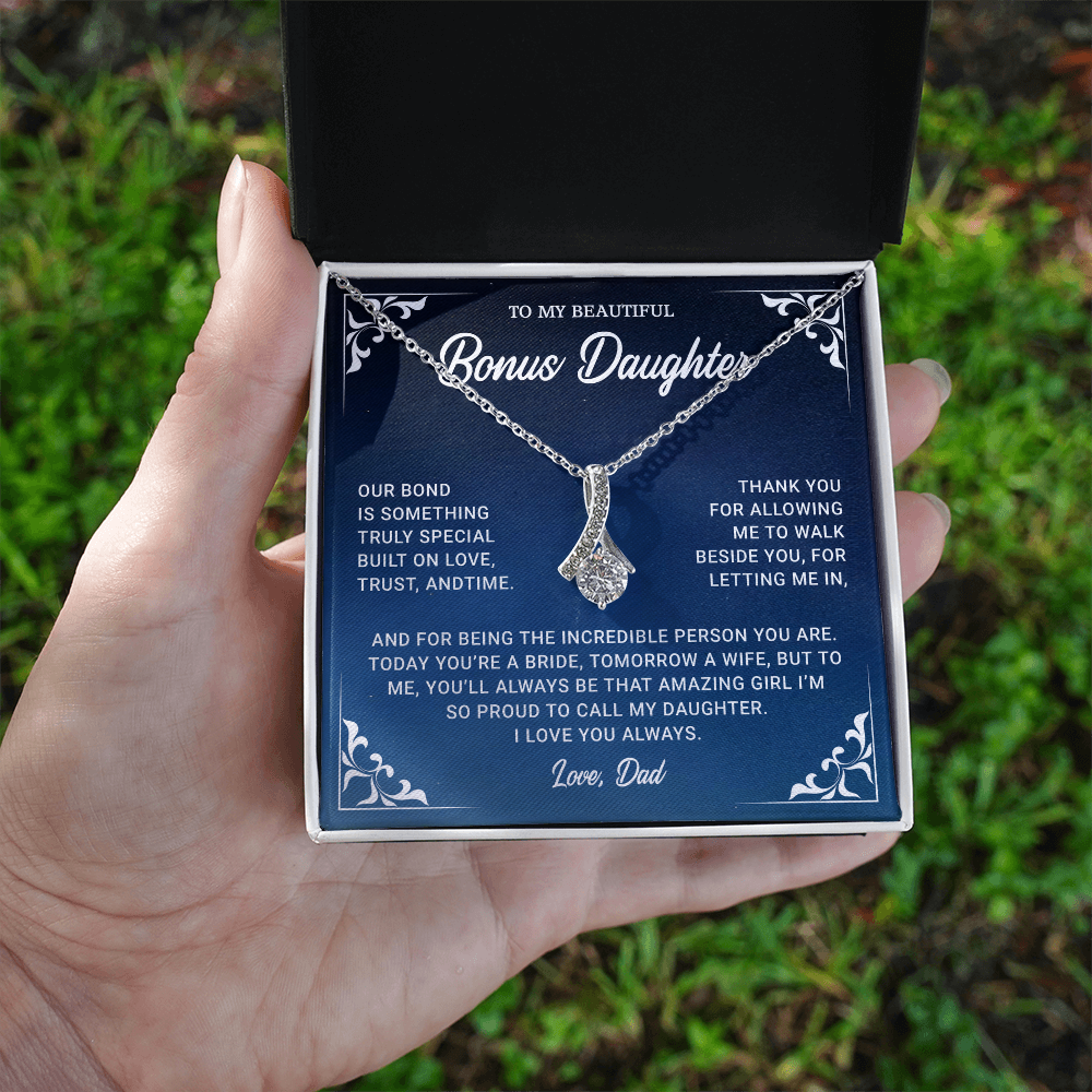 Let your bonus daughter know she’s never alone – this heartfelt necklace gift from Mom & Dad speaks volumes of love and support.
