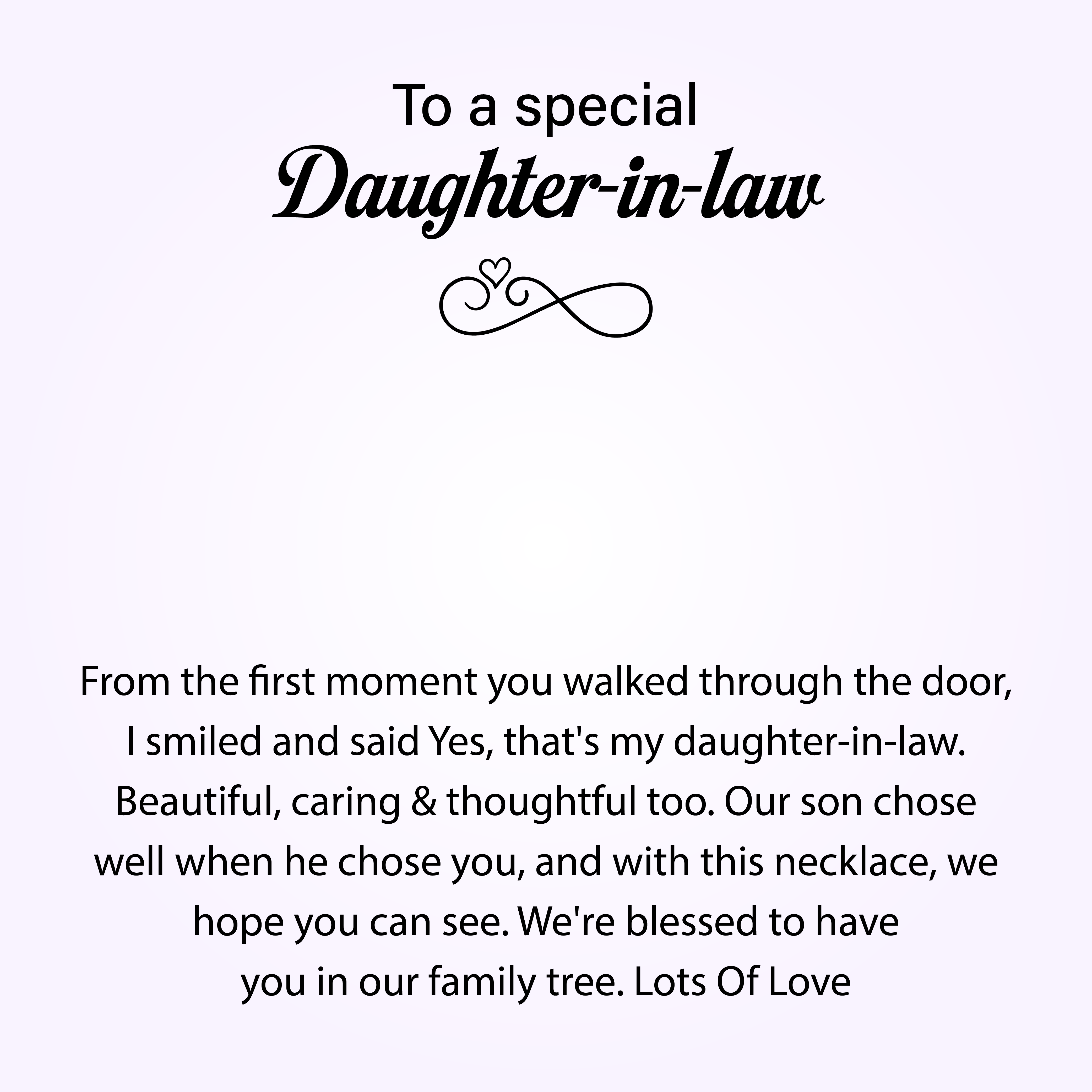 To My Daughter-in-law, We Both Love the Same Amazing Man. This Necklace is a Piece of My Heart, Welcoming You to the Family With Love and Pride.
