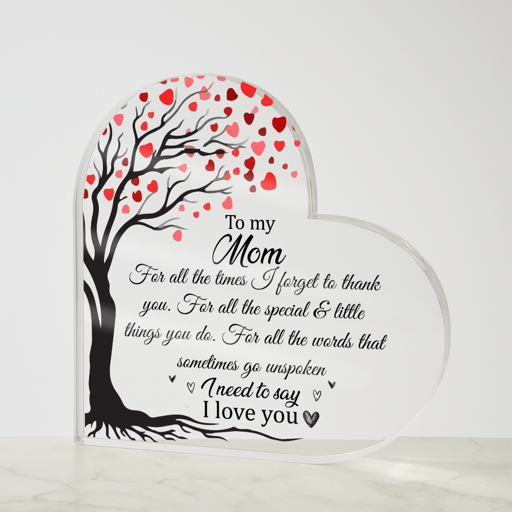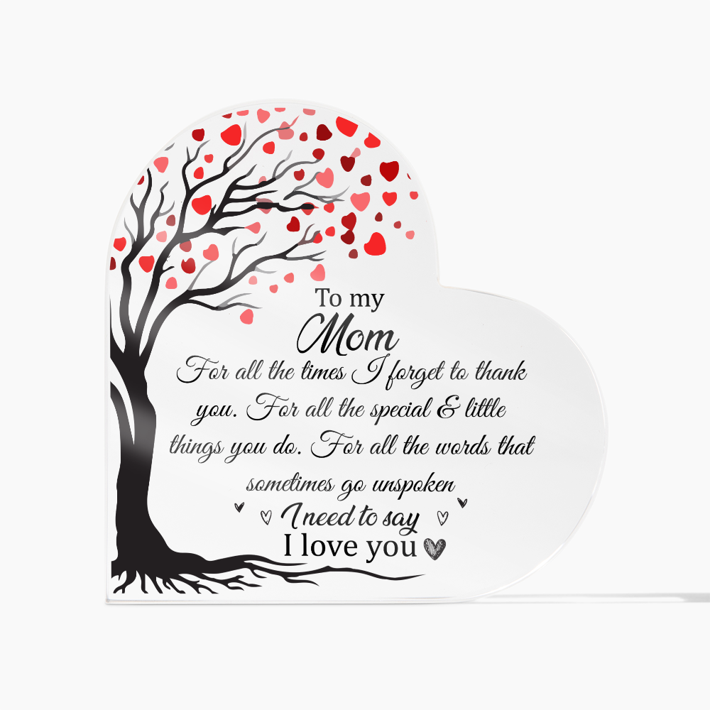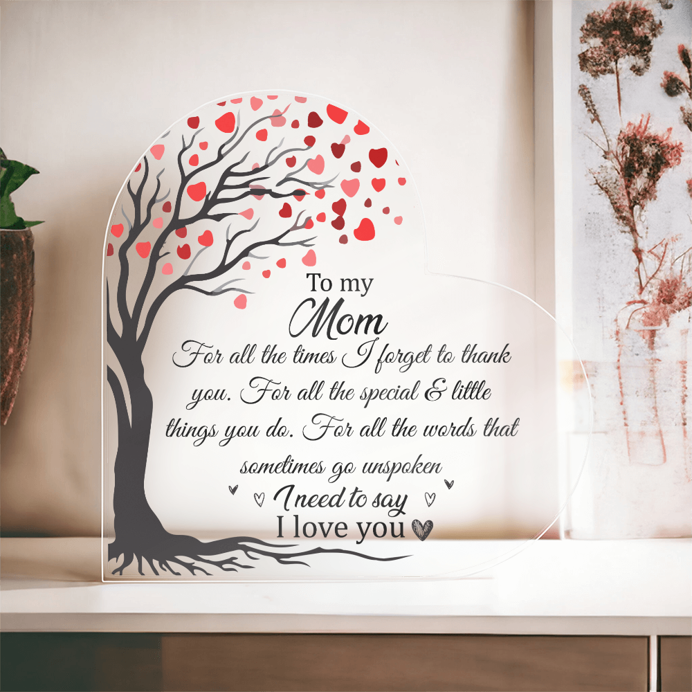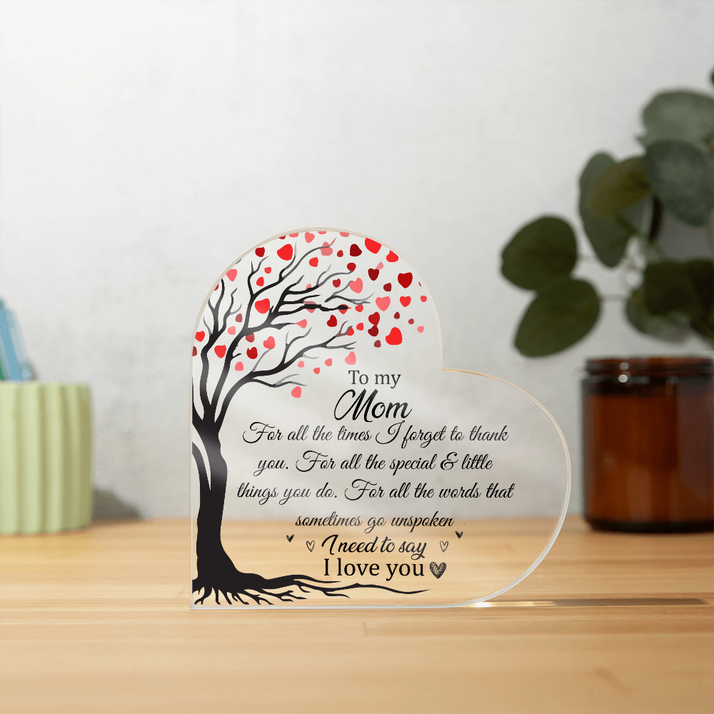 Mom Acrylic Heart Plaque Gift with a heartfelt message. A perfect keepsake for mom, expressing love and gratitude. The best mom gift for birthdays or special moments.