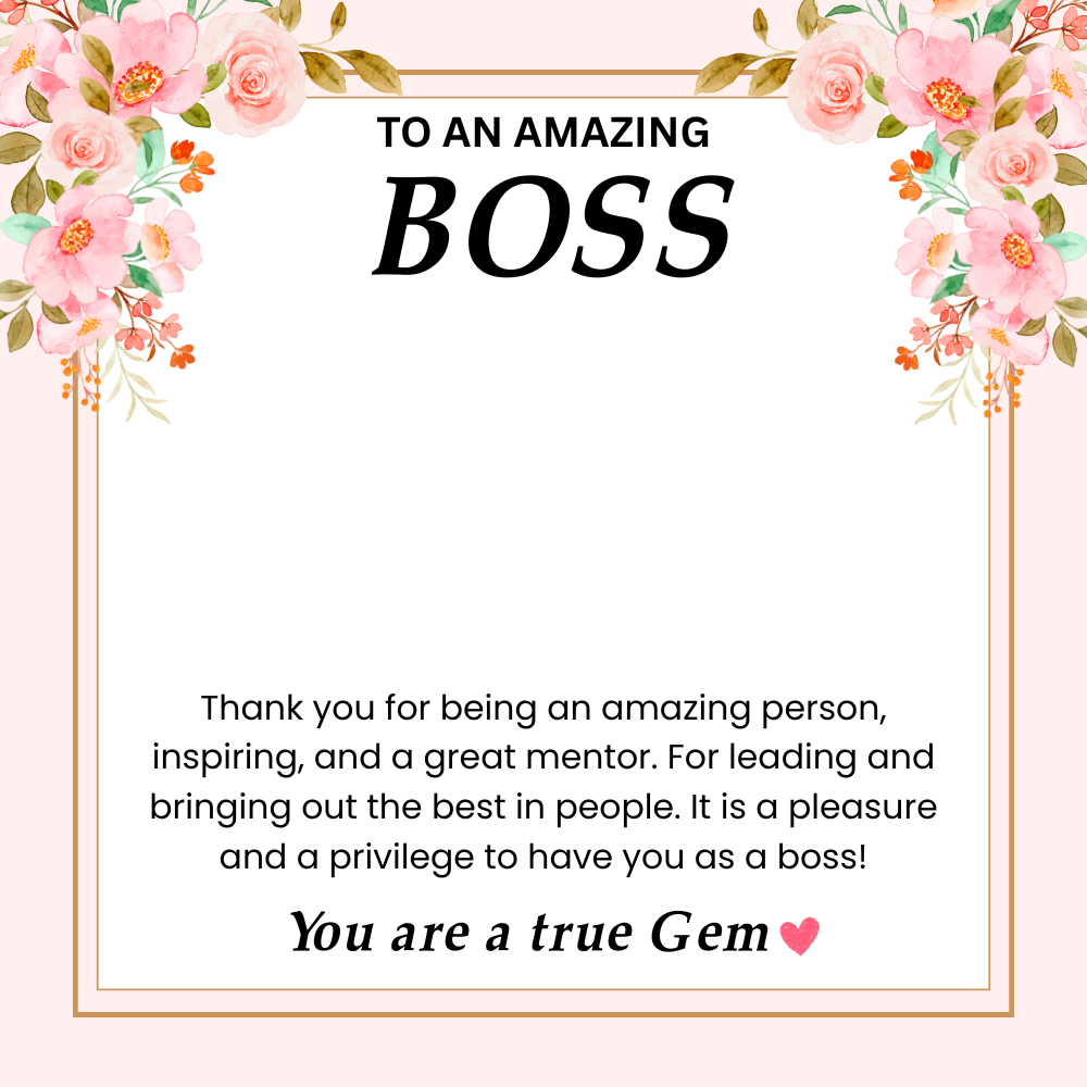 Celebrate your wonderful boss with this meaningful necklace and touching card, a timeless keepsake of appreciation, respect, and heartfelt thanks.