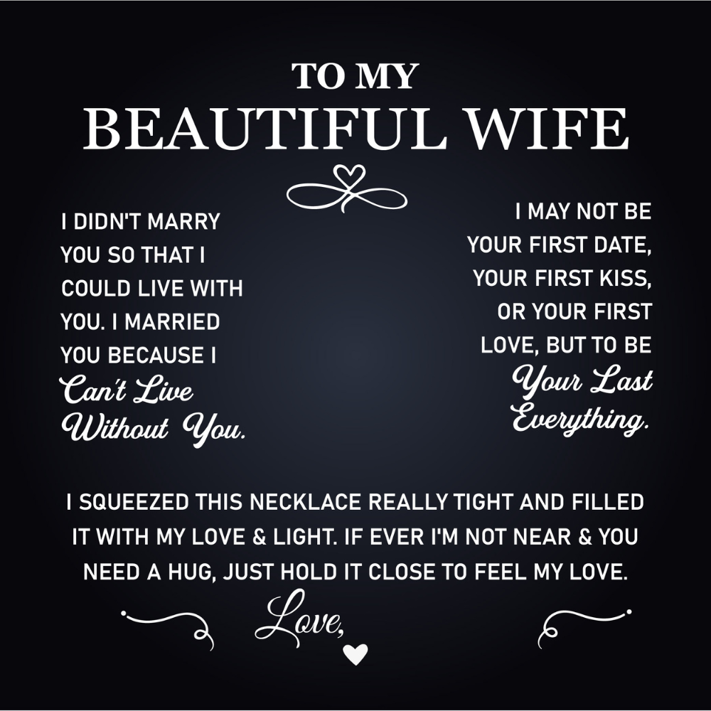 Surprise your wife with a romantic necklace gift from her husband. Perfect for anniversaries or Valentine’s Day. Comes with a custom message card & gift box.