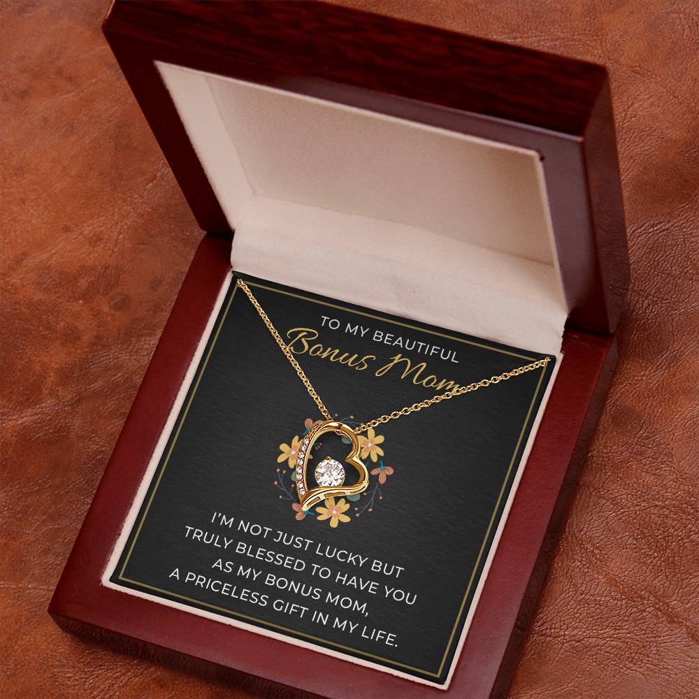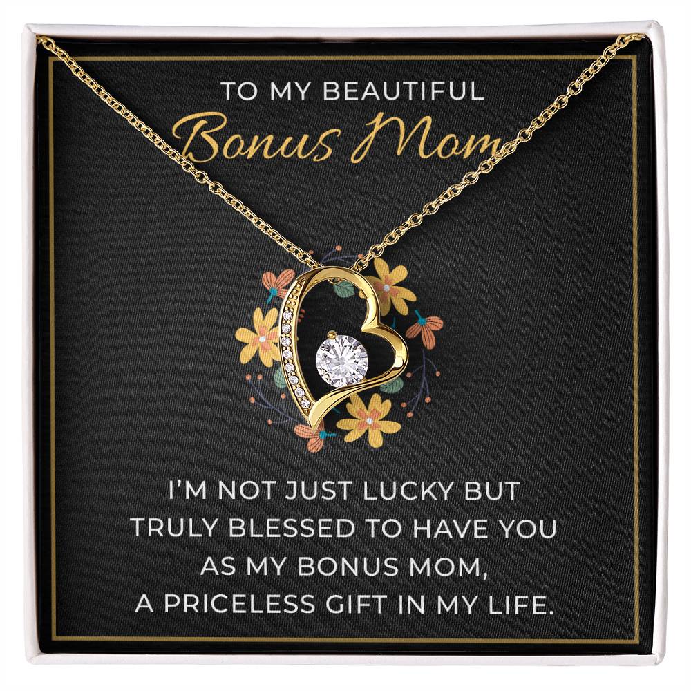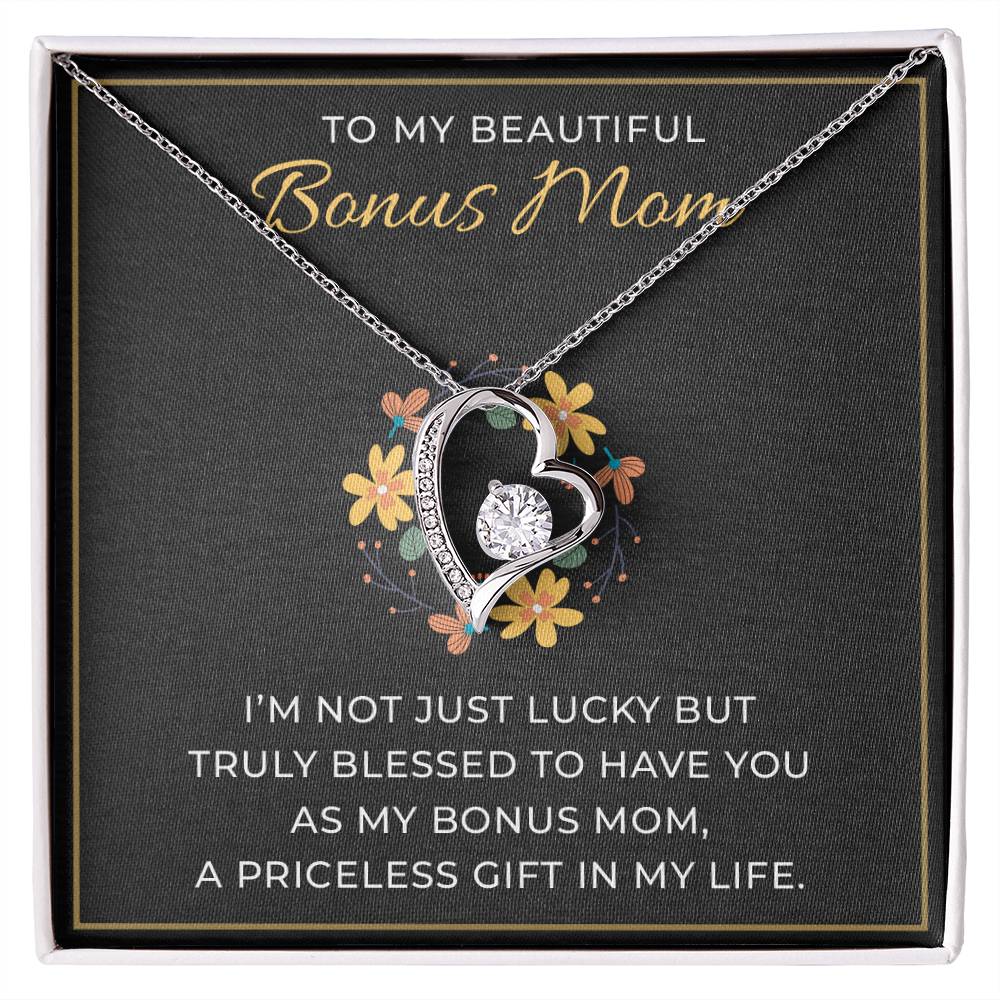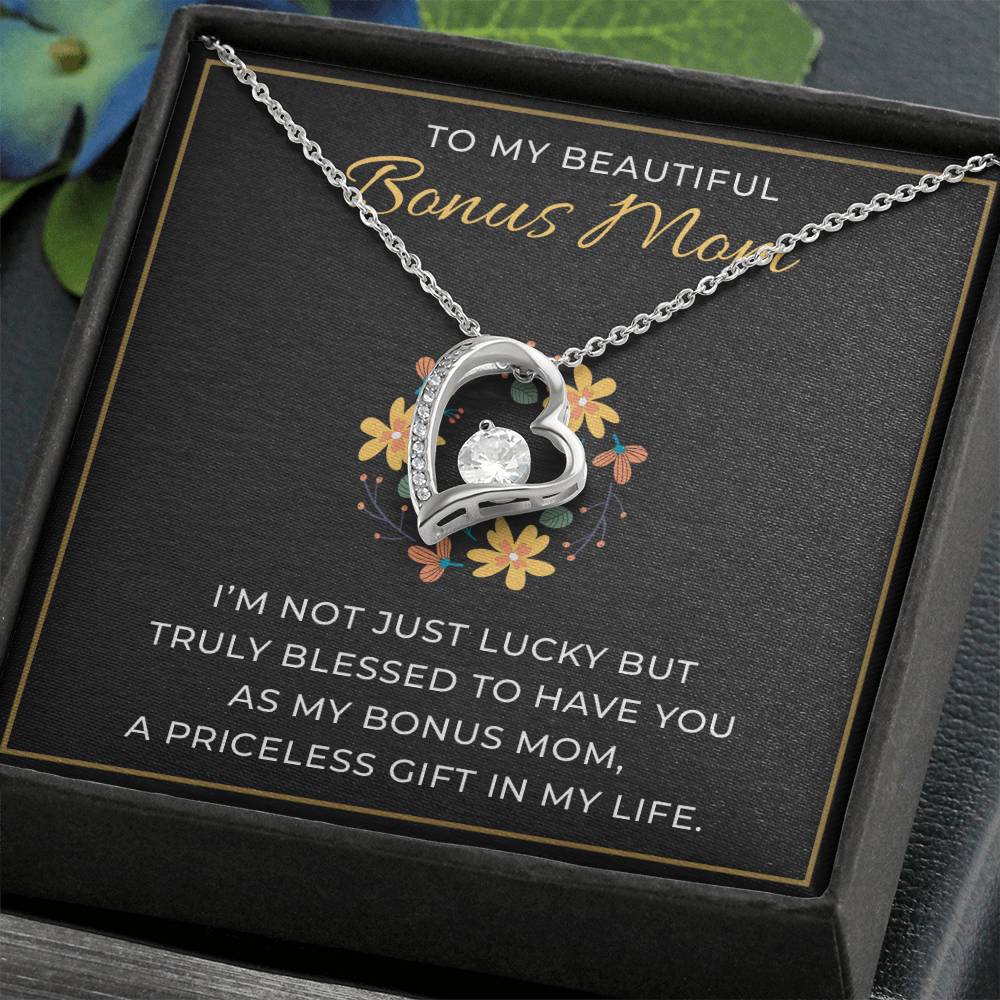 To My Beautiful Bonus Mom Necklace, White Gold Jewelry, Heartfelt Mother's Day & Birthday Gift, Special Present for Stepmom