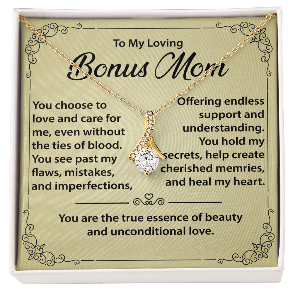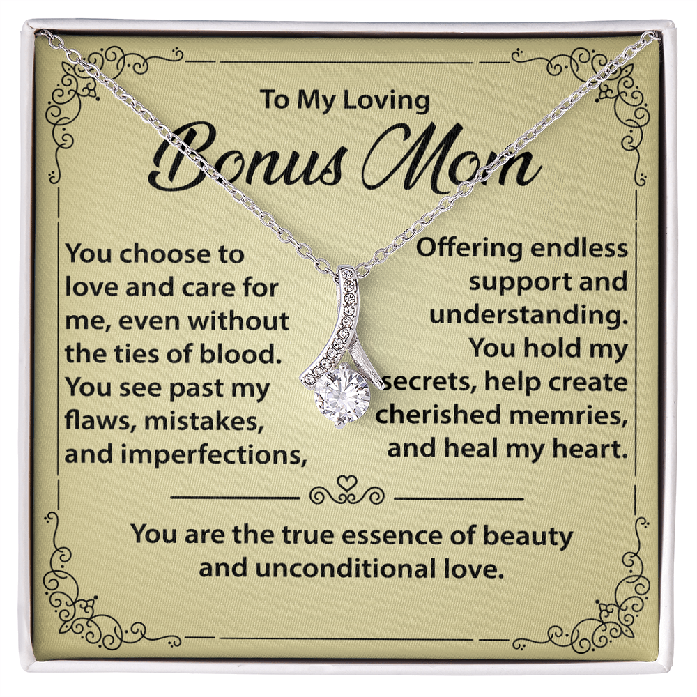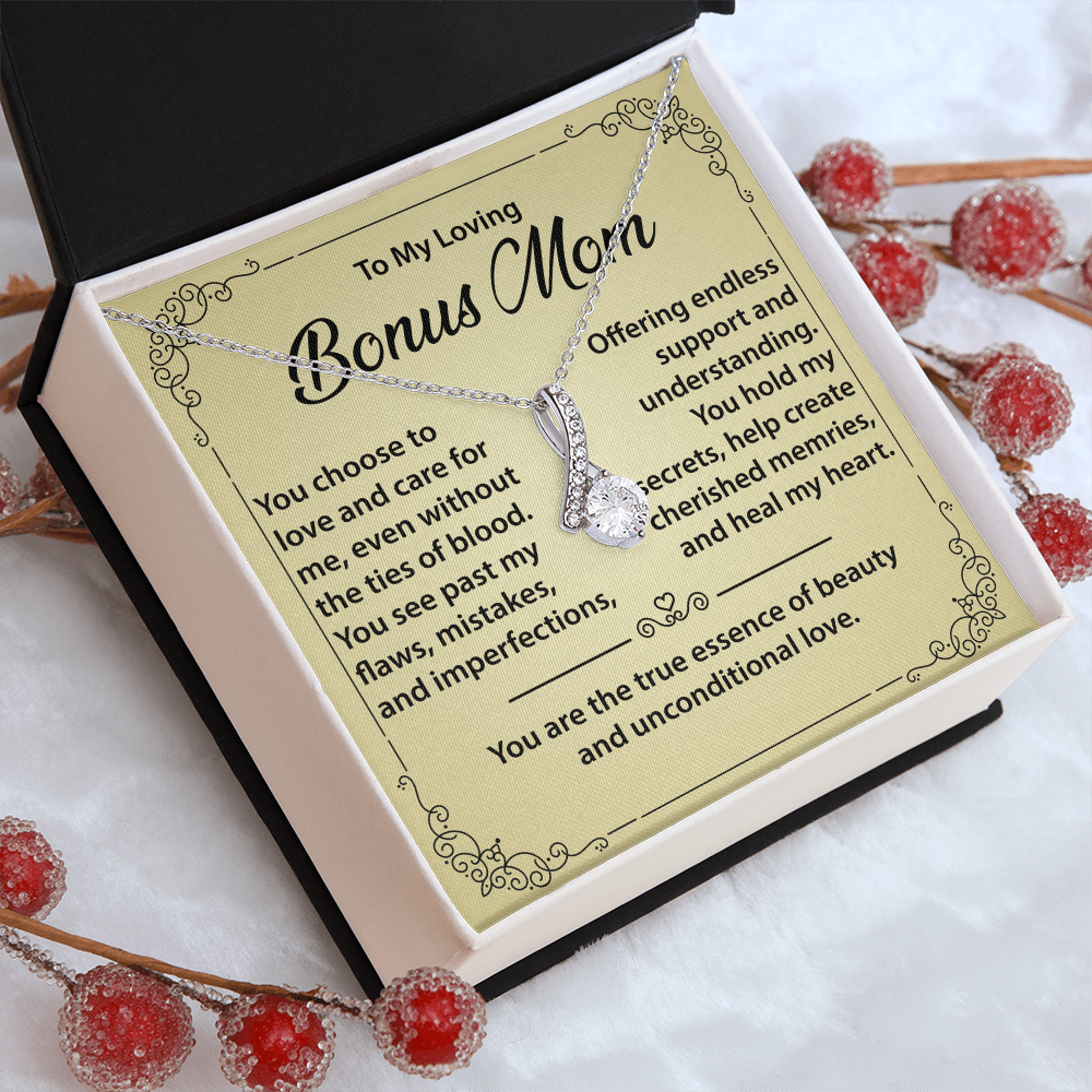 Best Gift for Bonus Mom - Alluring Beauty Necklace from Daughter or Son, Mother Daughter Necklace
