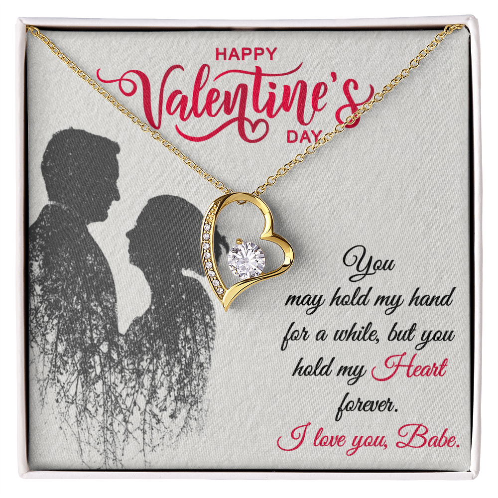 Happy Valentine’s Day! You may hold my hand for a while, but you hold my heart forever. I love you, Babe. This Forever Love Necklace symbolizes the eternal connection we share. A reminder that no matter where life takes us, you will always hold my heart, now and forever. A perfect gift for your soulmate.