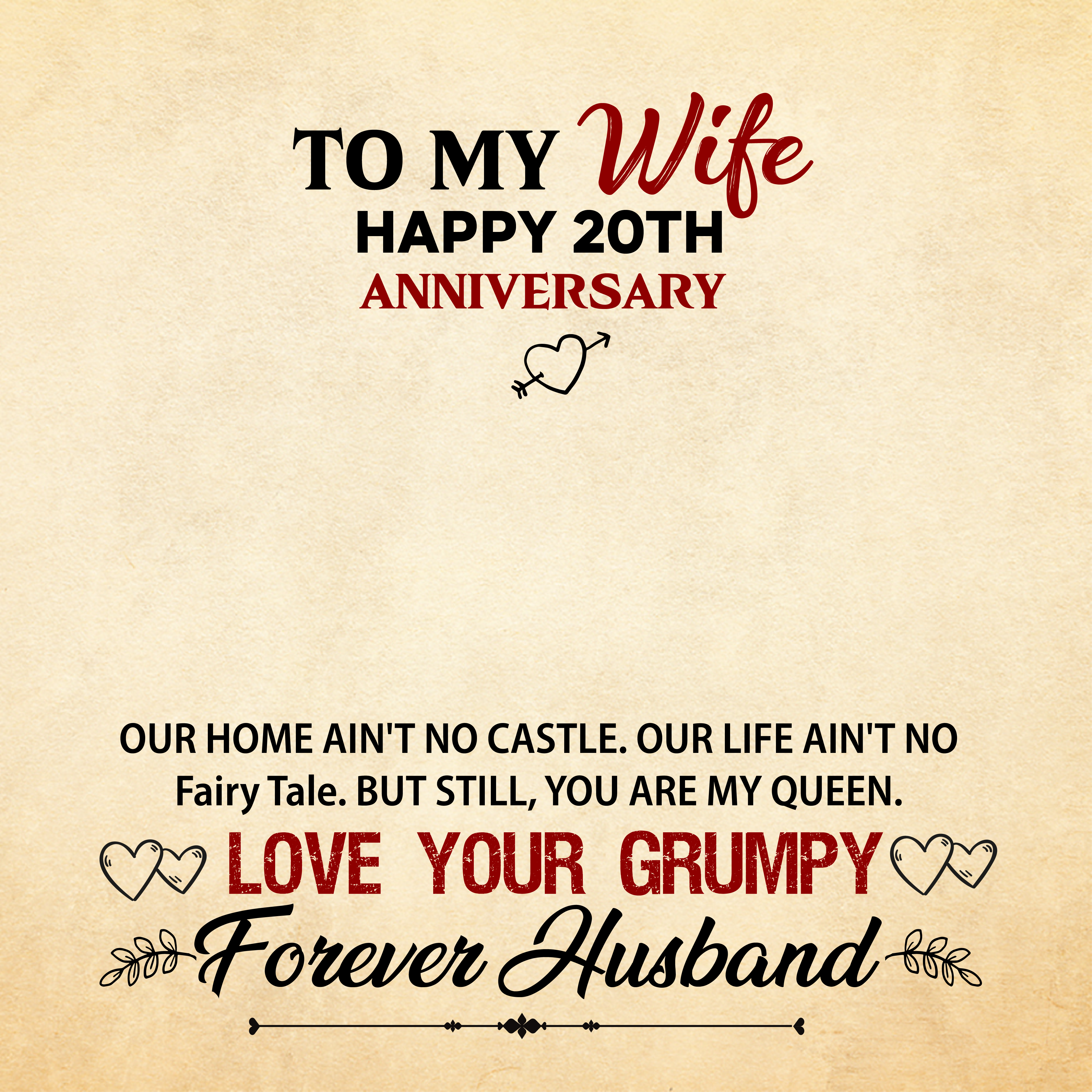 Surprise your wife on your 20th anniversary with the elegant Love Knot necklace. Featuring a heartfelt message from 'your grumpy' to his queen, this sentimental keepsake celebrates your unique love story. A meaningful gift to show her she’s cherished every day of your life together.