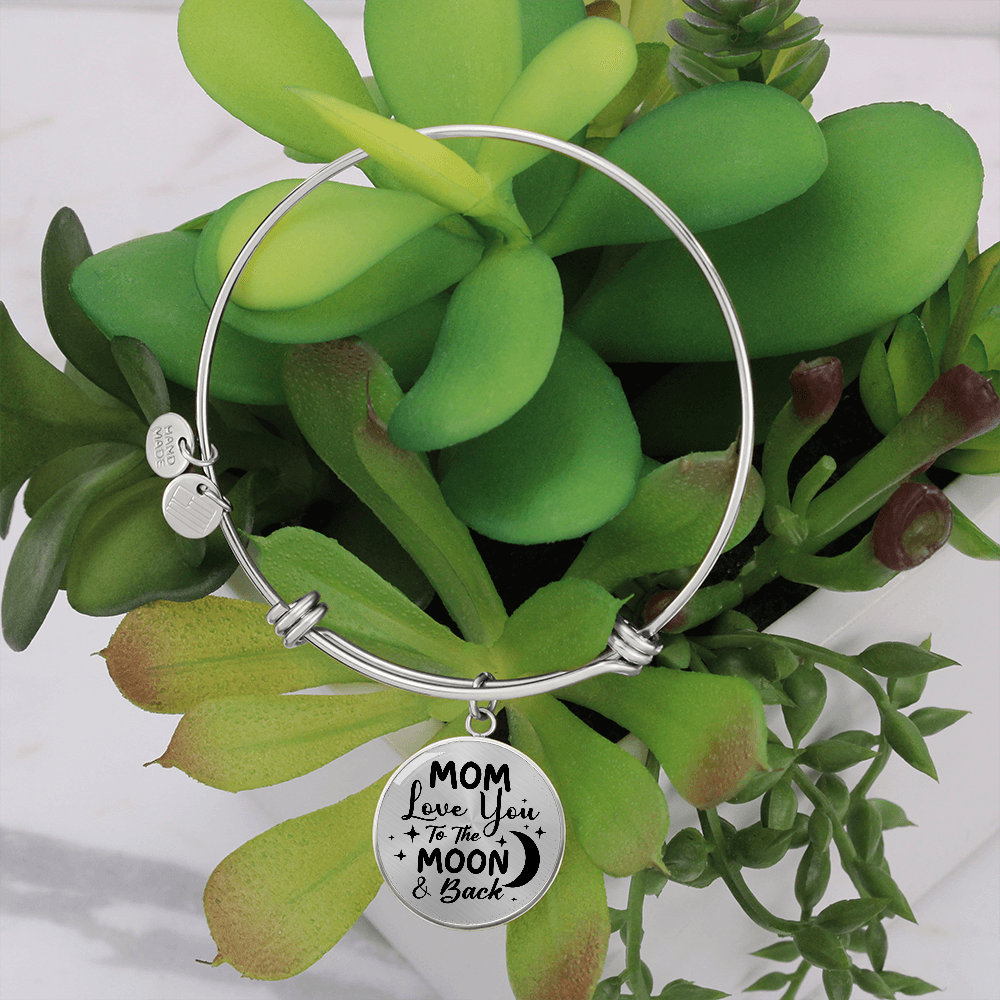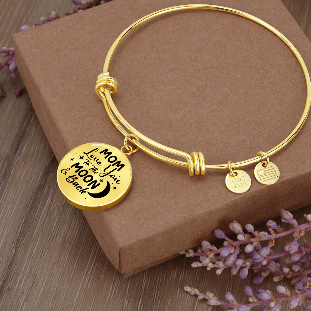 Our Luxury Circle Bangle is the perfect way to show your love! Engraved with "Mom Love You To The Moon & Back," this elegant Mother-Daughter bracelet is a heartfelt gift for Mother's Day. This is the perfect gift for mommy and me!
