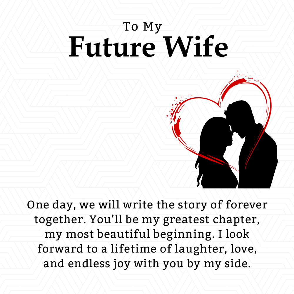 To my future wife: One day, we’ll write the story of forever together. You’ll be my greatest chapter, my beautiful beginning. This necklace with a heartfelt message is a symbol of our future, ideal for Valentine’s, anniversaries, or birthdays, expressing a lifetime of love, laughter, and devotion.