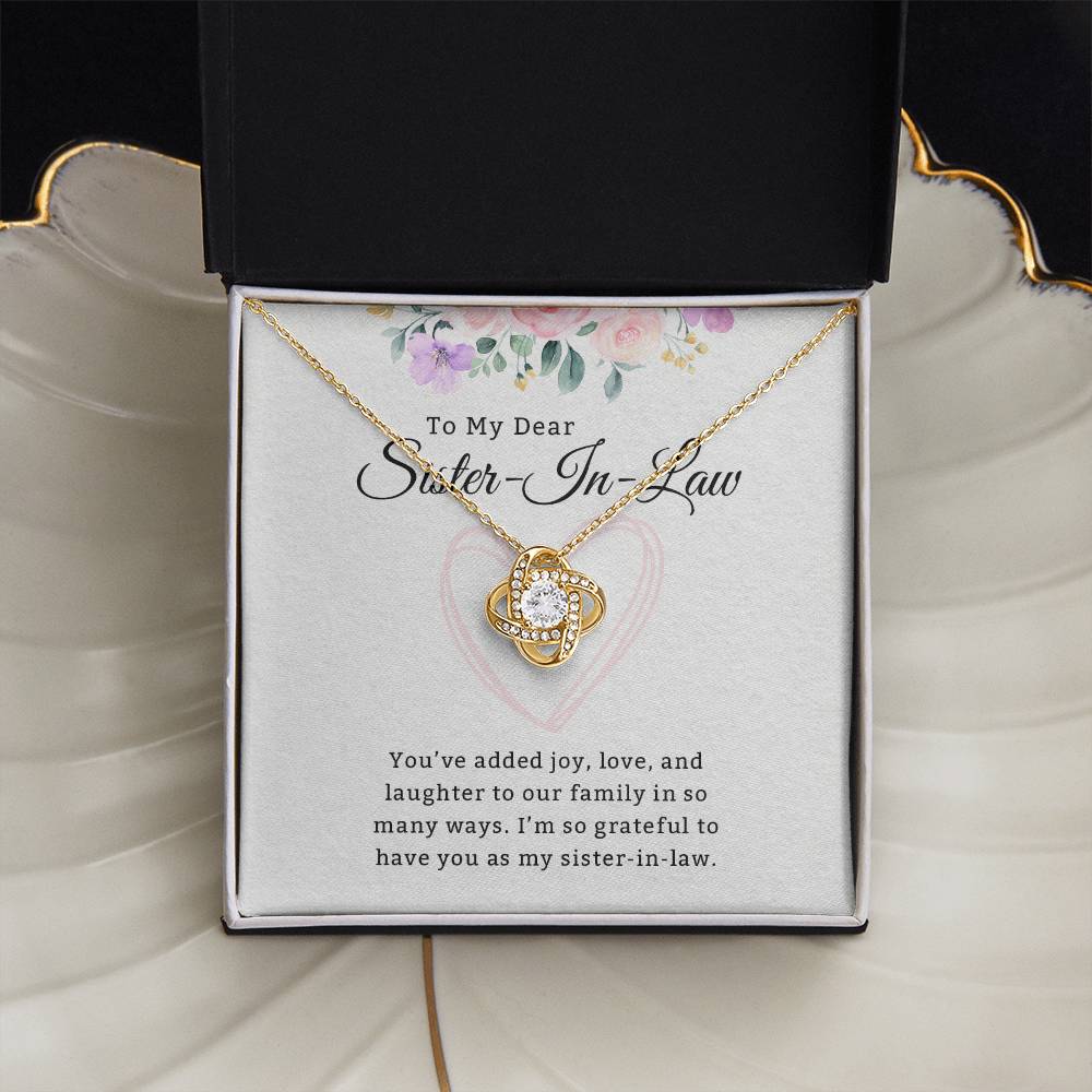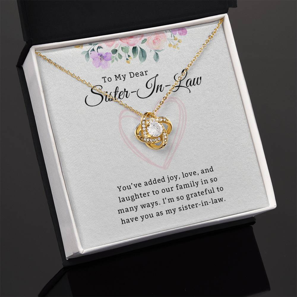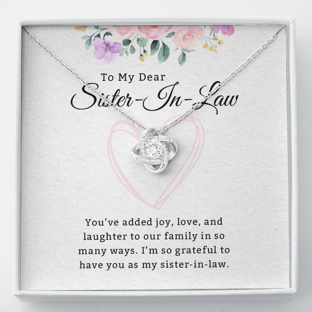 Sister-in-Law Love Knot Necklace – A perfect gift from mother-in-law to daughter-in-law, representing an unbreakable bond. Features cubic zirconia crystals and comes with a message card in a luxury gift box.