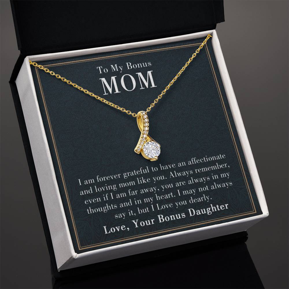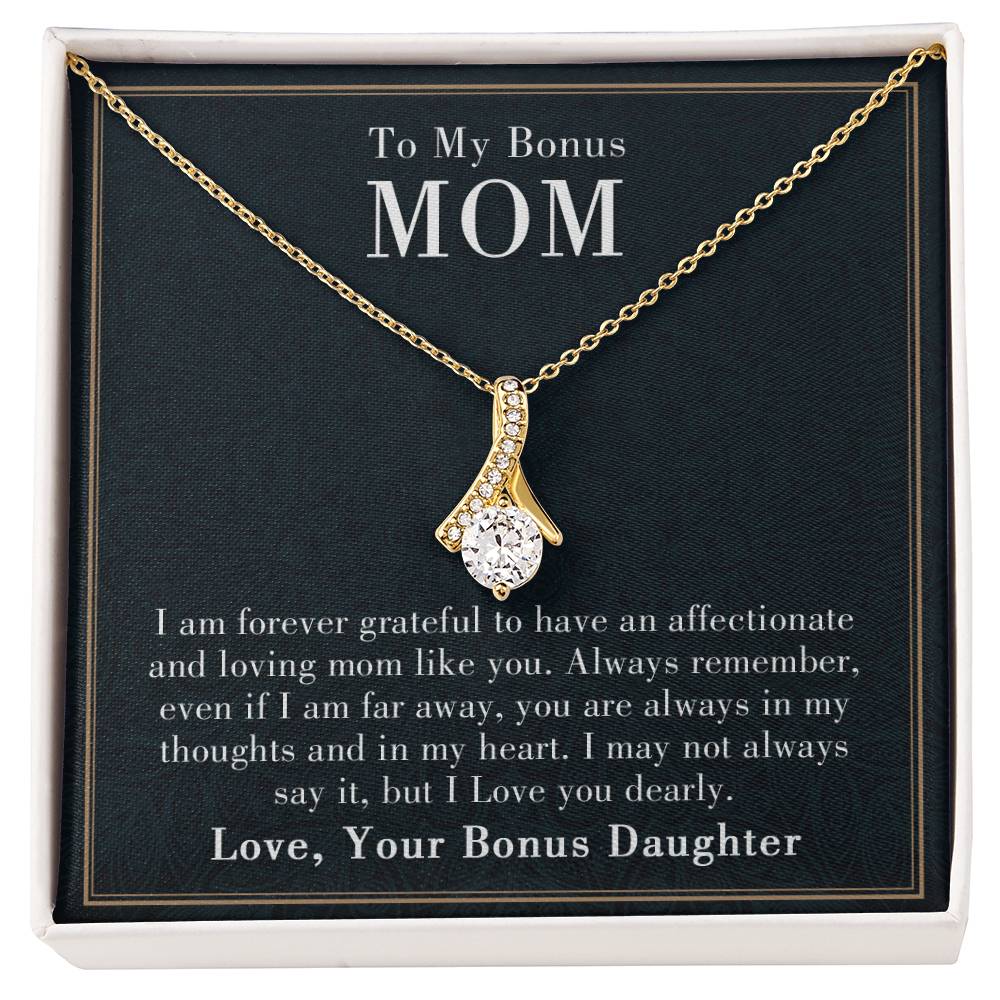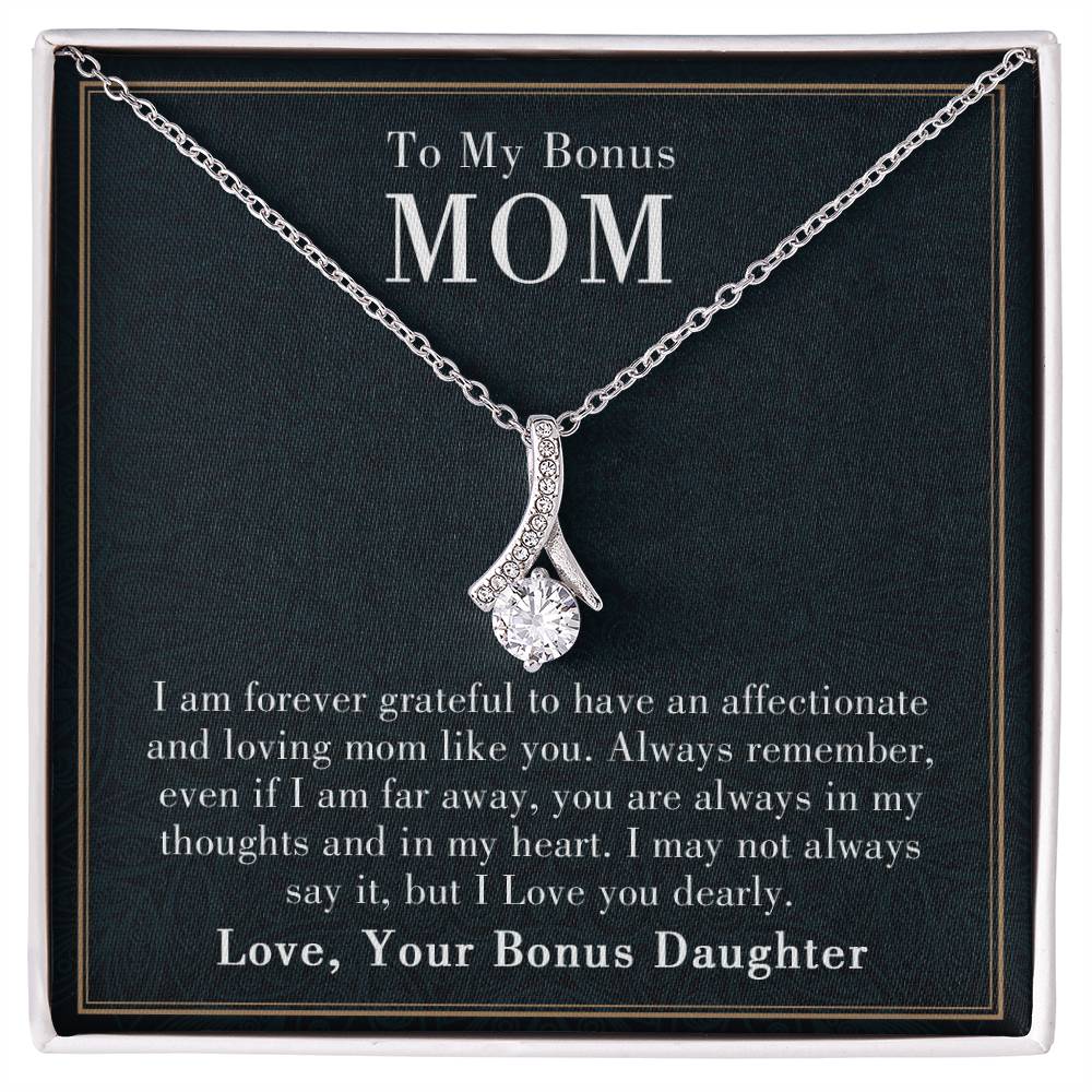To My Bonus Mom Alluring Beauty Necklace, Heartfelt Birthday & Mother's Day Gift to Show Your Love and Appreciation from Daughter