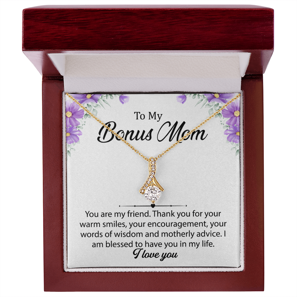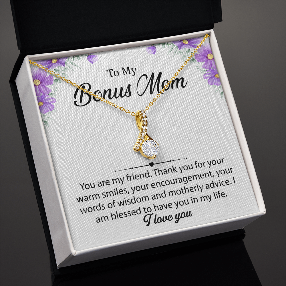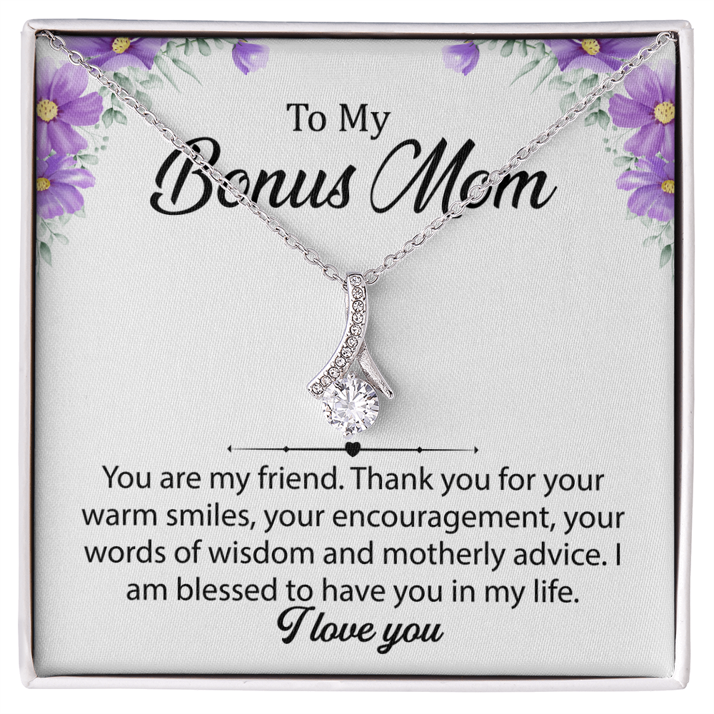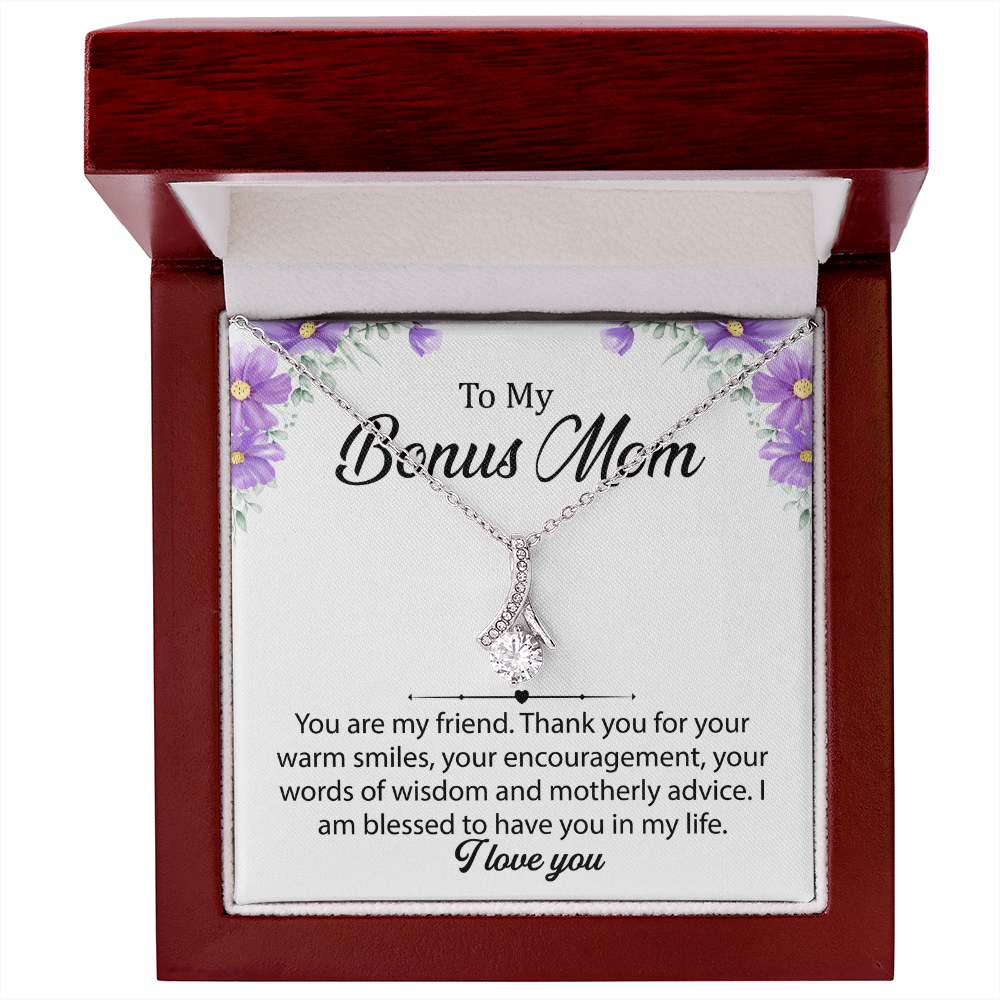 To My Bonus Mom Gifts, Gifts for Step Mom - Elegant Alluring Beauty Necklace for Her, Bonur Mom Jewelry Gifts