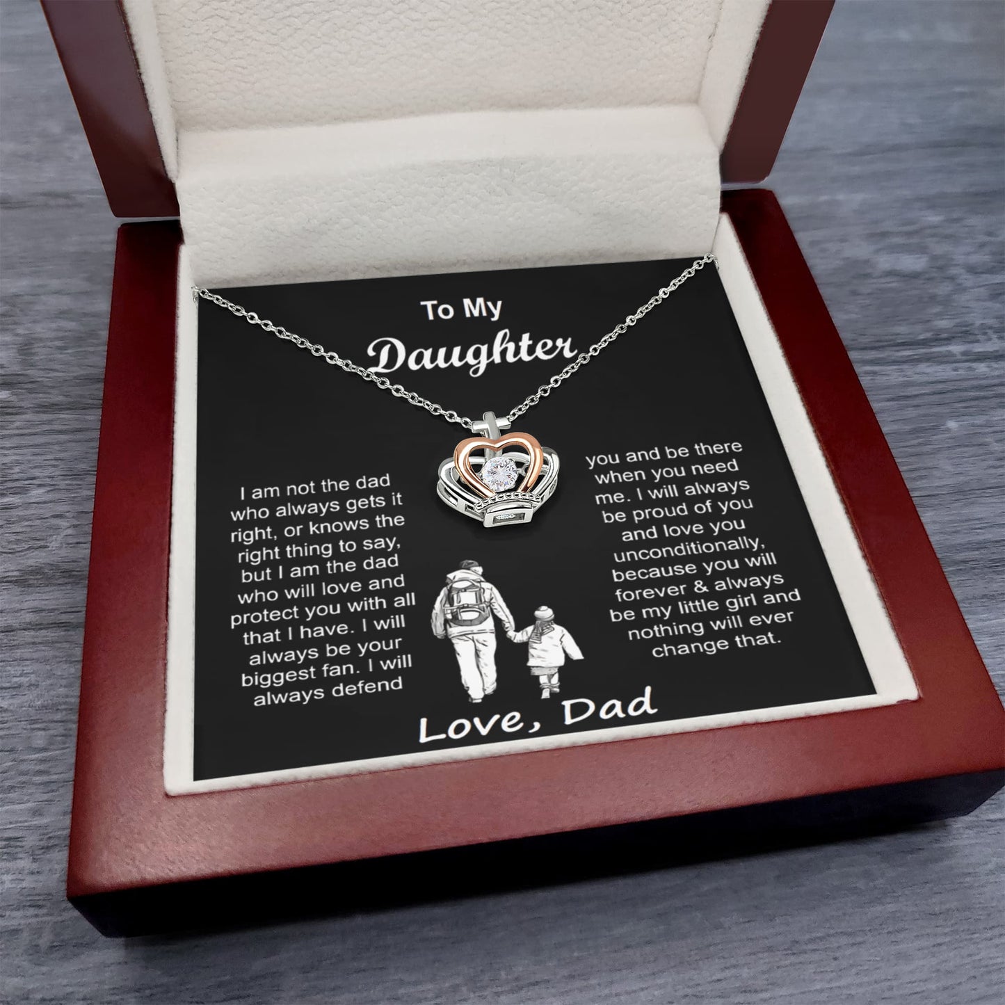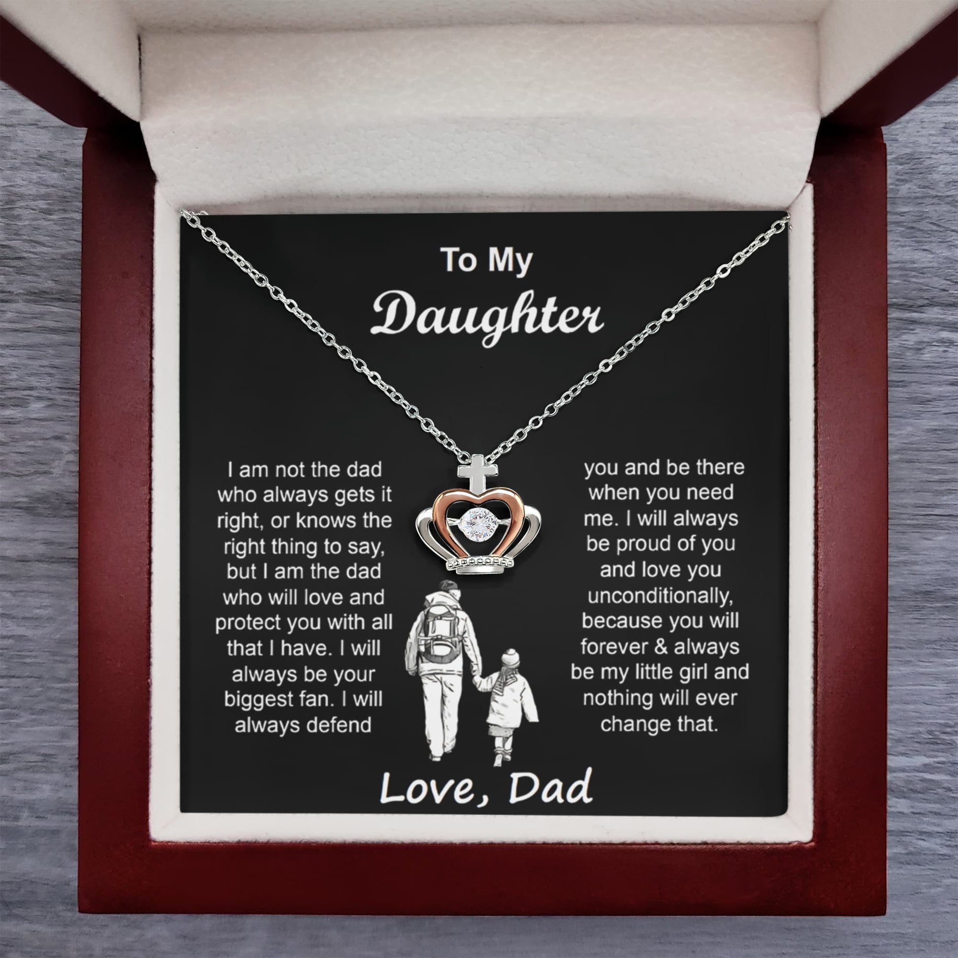 To My Daughter Crown Pendant Necklace from Dad with Heartfelt Message & Elegant Box, Father Daughter Gifts from Dad, Birthday Gift for Daughter, Father Daughter Necklace