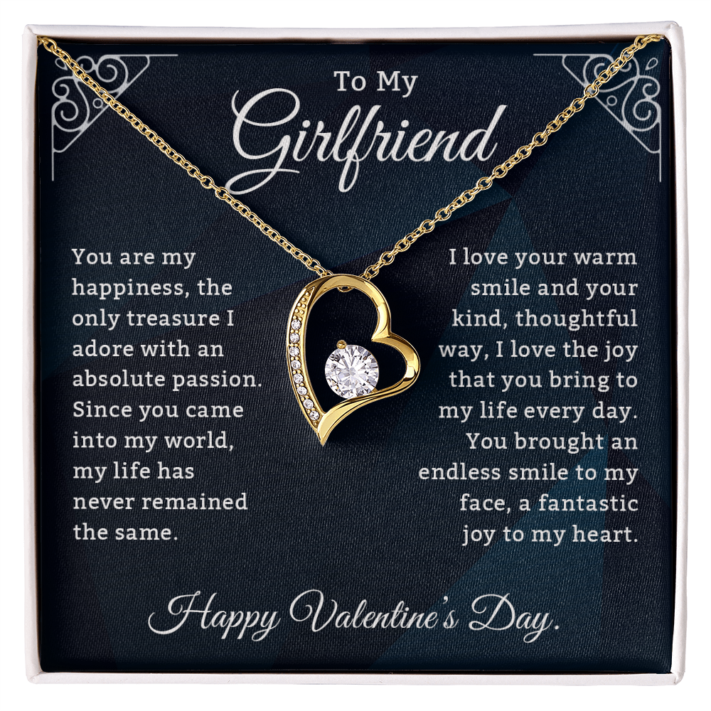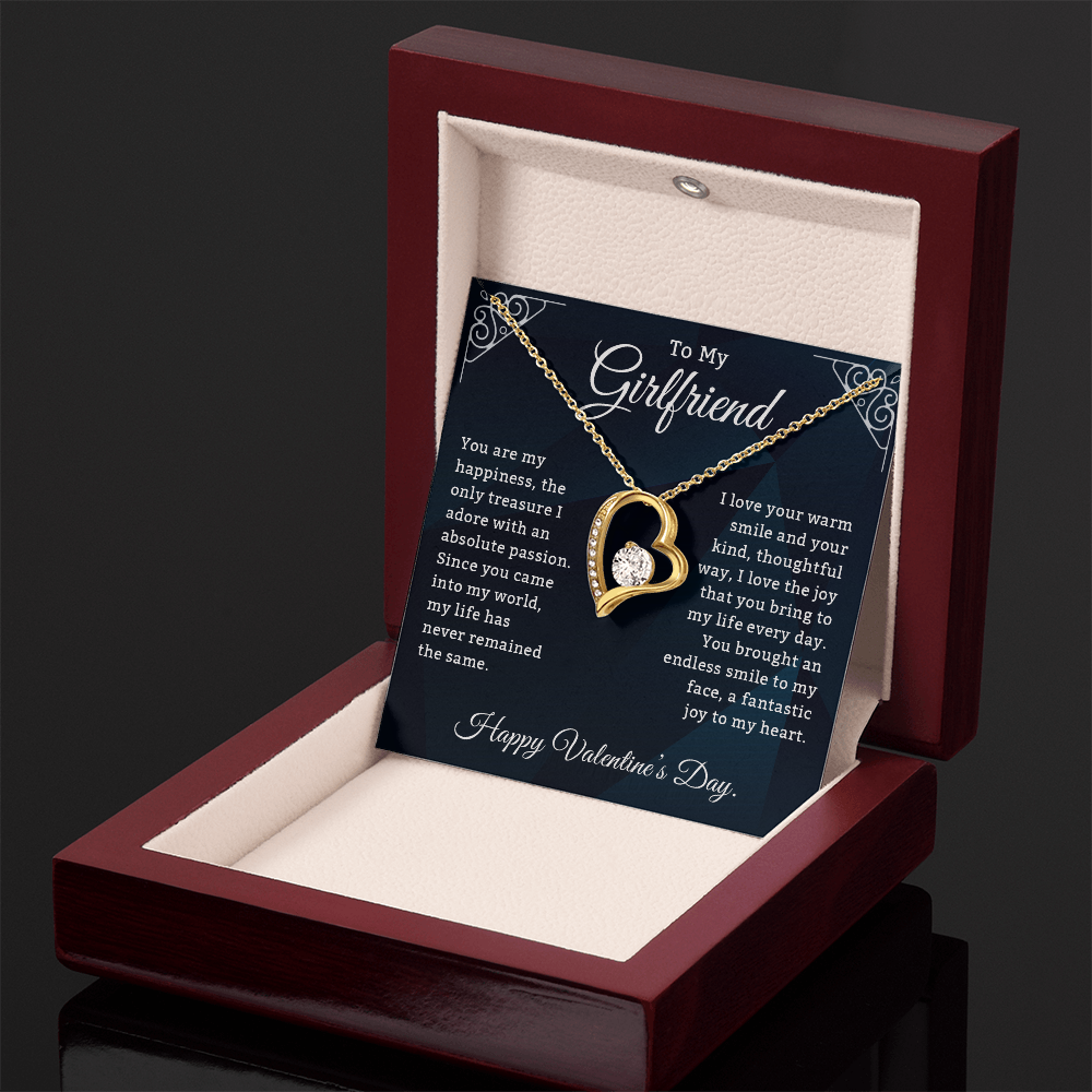 To my amazing girlfriend, since you entered my life, everything has changed for the better. Your smile brightens my day, and your kind heart fills me with joy. The Forever Love Necklace is a symbol of how much you mean to me, and this Valentine's Day, I want to remind you that you are my treasure. I love you more each day, and I am grateful for every moment we share. Happy Valentine’s Day, my forever love.