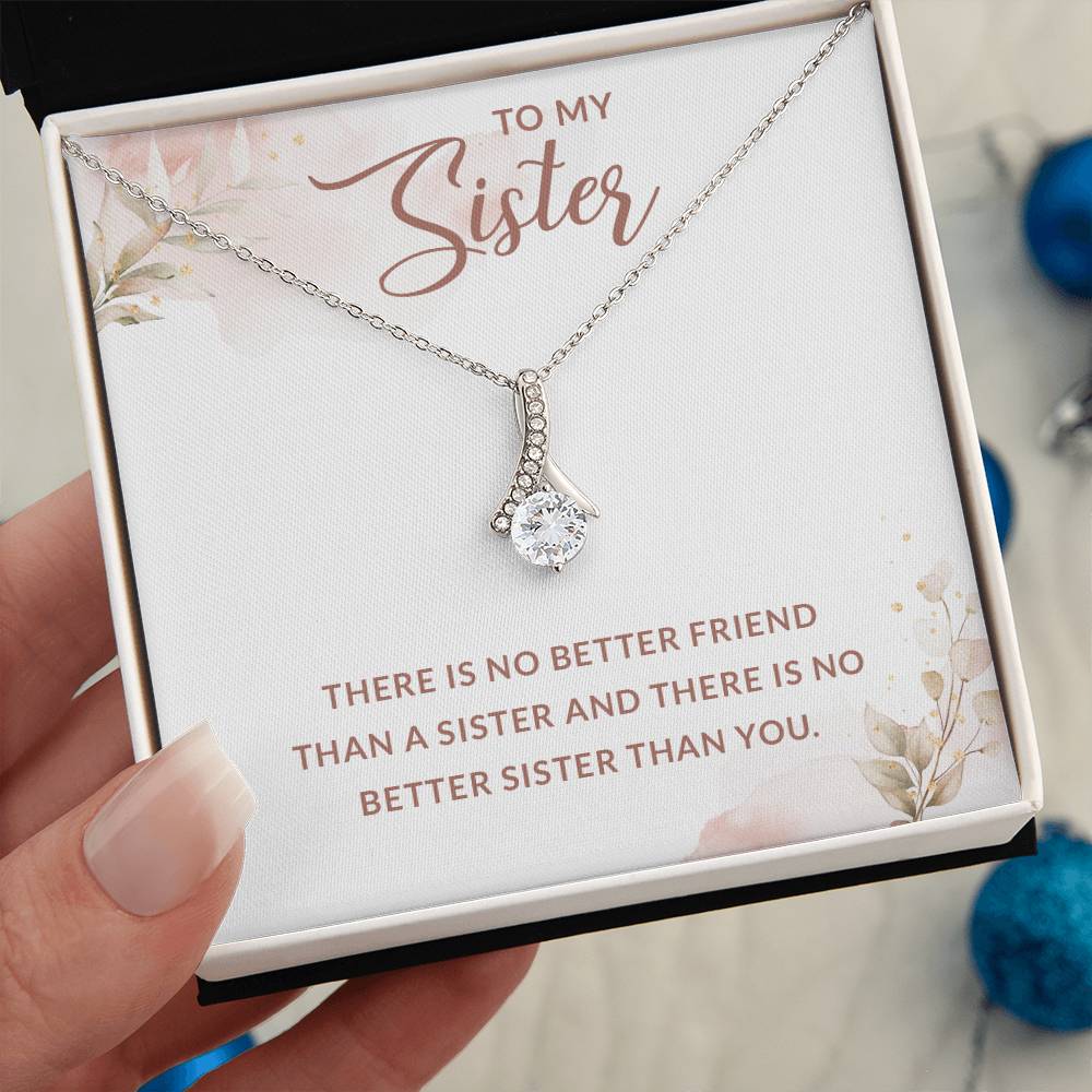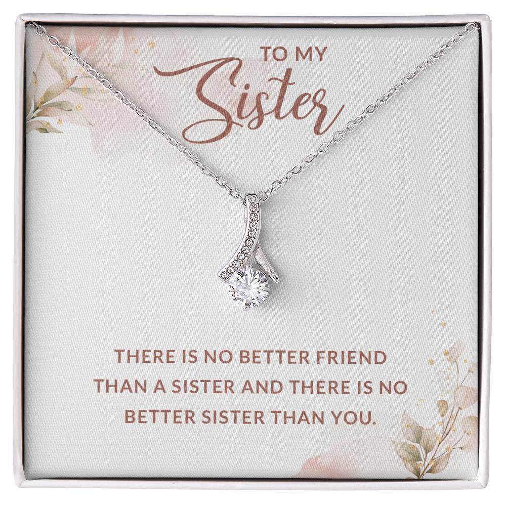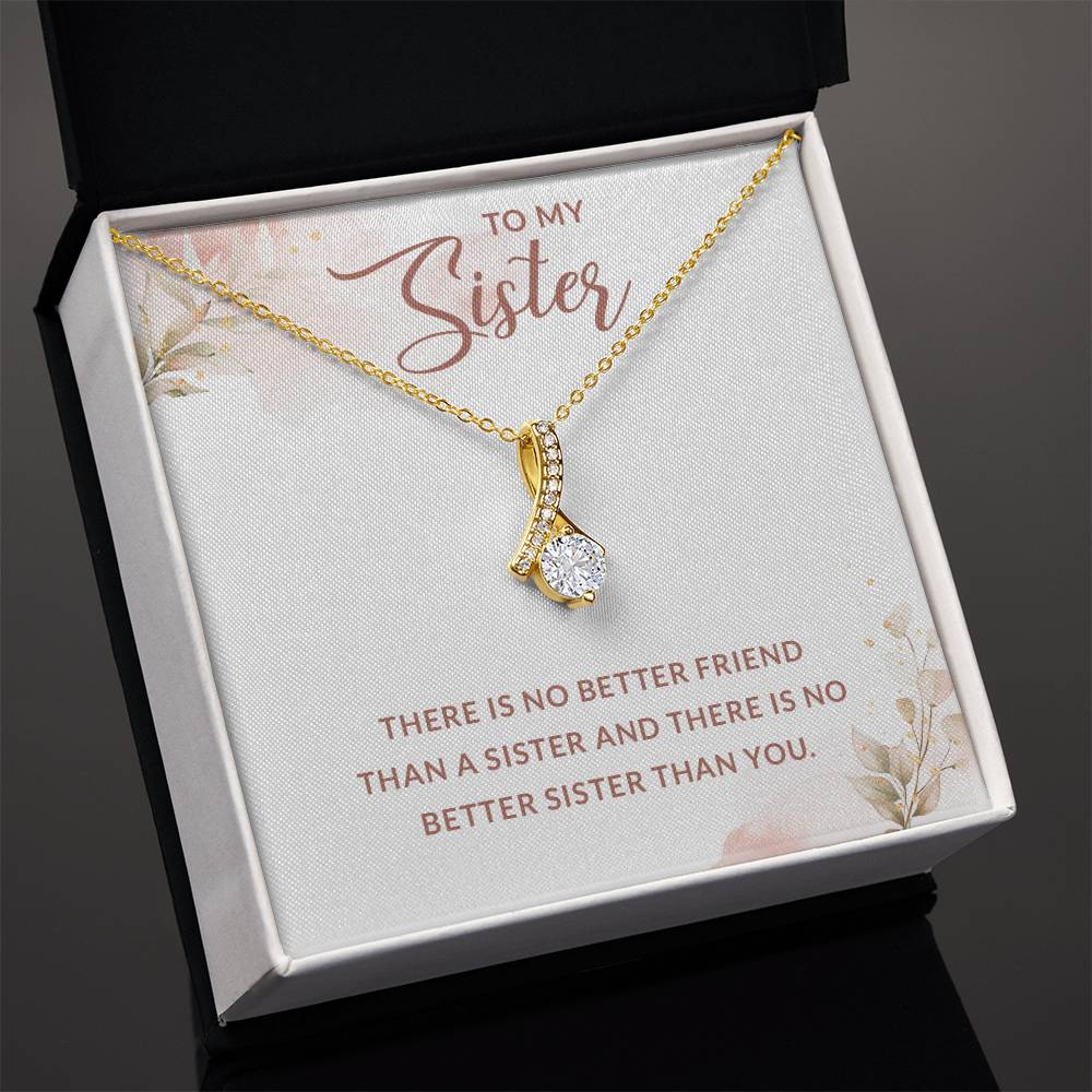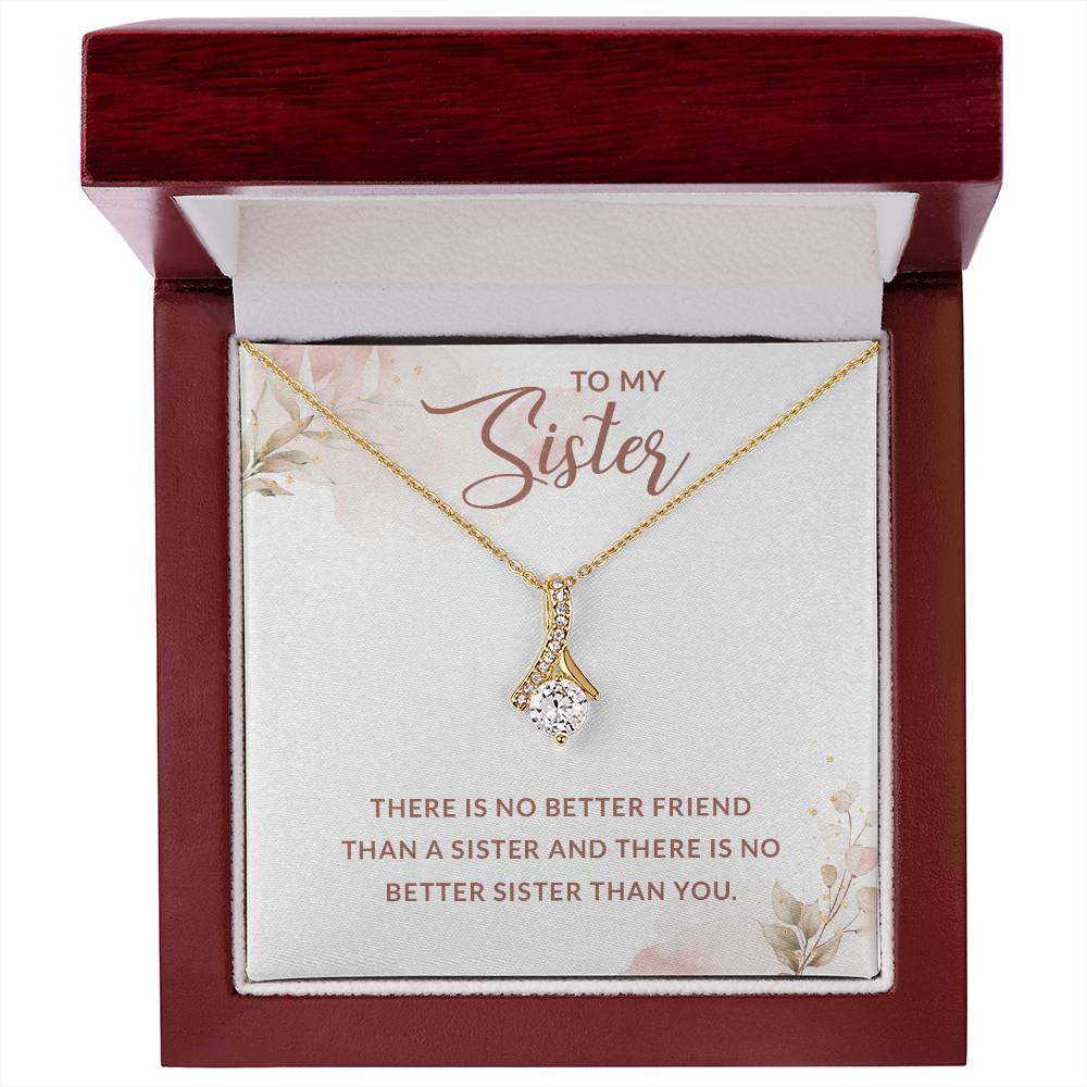 To My Sister Wonderful Sister Alluring Ribbon Necklace, Birthday, Graduation Gift With Message Card