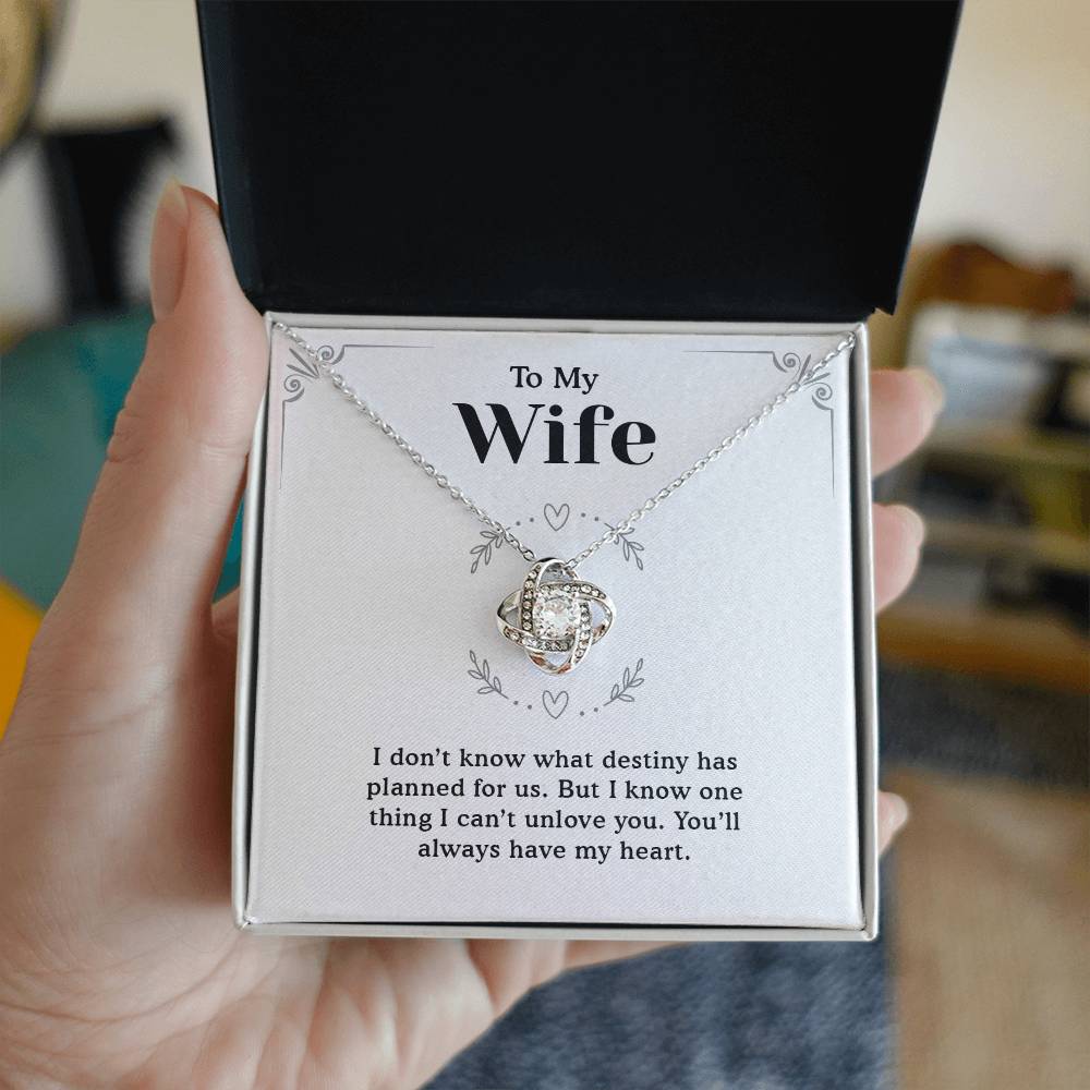 Gift your loved one the perfect symbol of your everlasting love with our Love Knot Necklace. With its elegant design and meaningful message, it's an ideal choice for anniversaries, birthdays, and Valentine's Day celebrations.