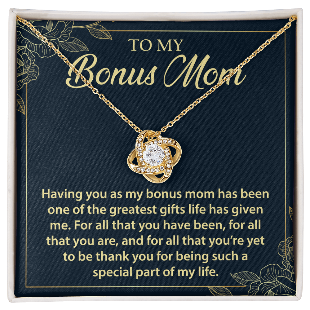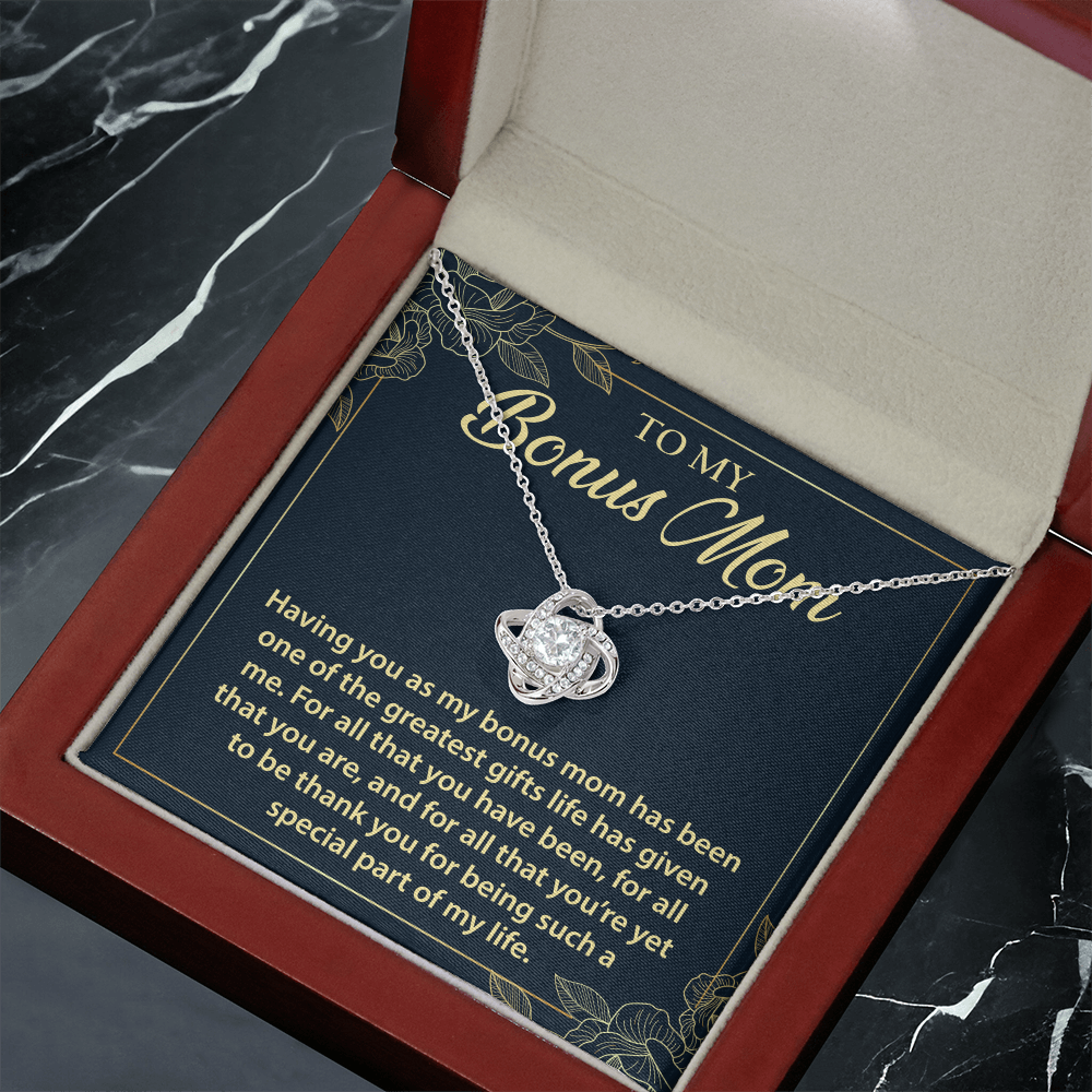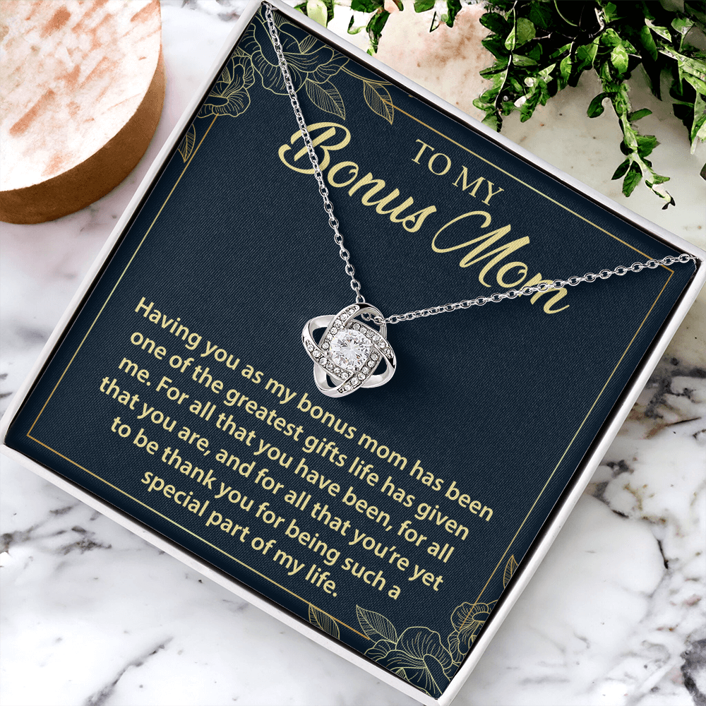 The Love Knot Necklace is a heartfelt gift for Bonus Moms and Step Moms. Celebrate her love and support with this timeless jewelry gift perfect for any occasion.