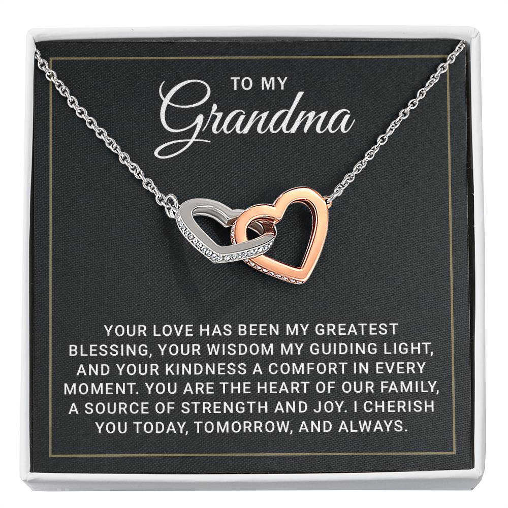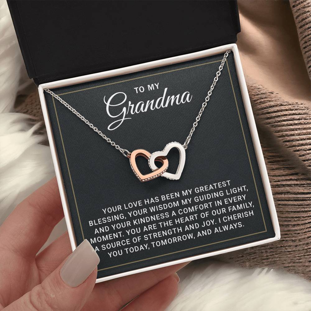 Celebrate the special bond between grandma and granddaughter with this stunning Interlocking Hearts Necklace. Featuring cubic zirconia crystals and a luxurious rose gold or 18k yellow gold finish, this necklace is the perfect gift for Mother’s Day, Christmas, or birthdays. Complete with a message card and gift box, it’s a timeless way to express your love.