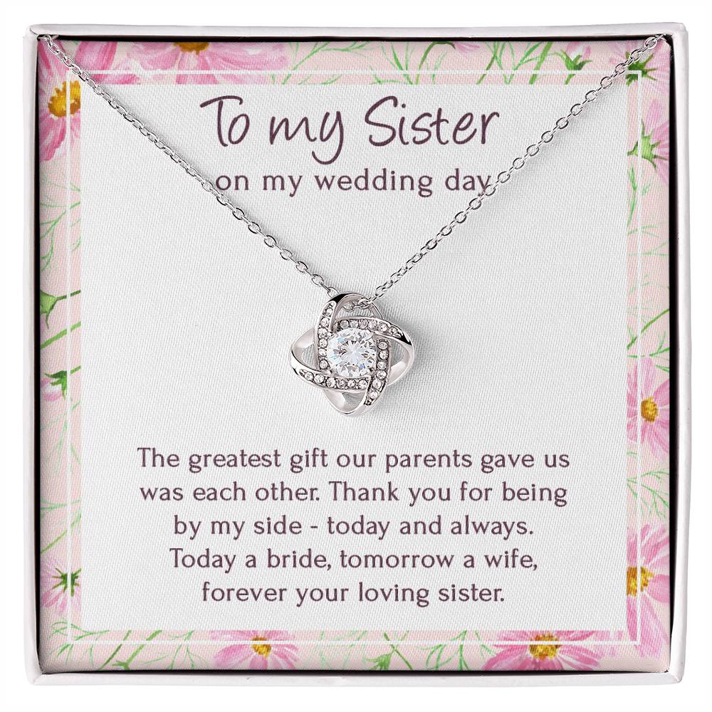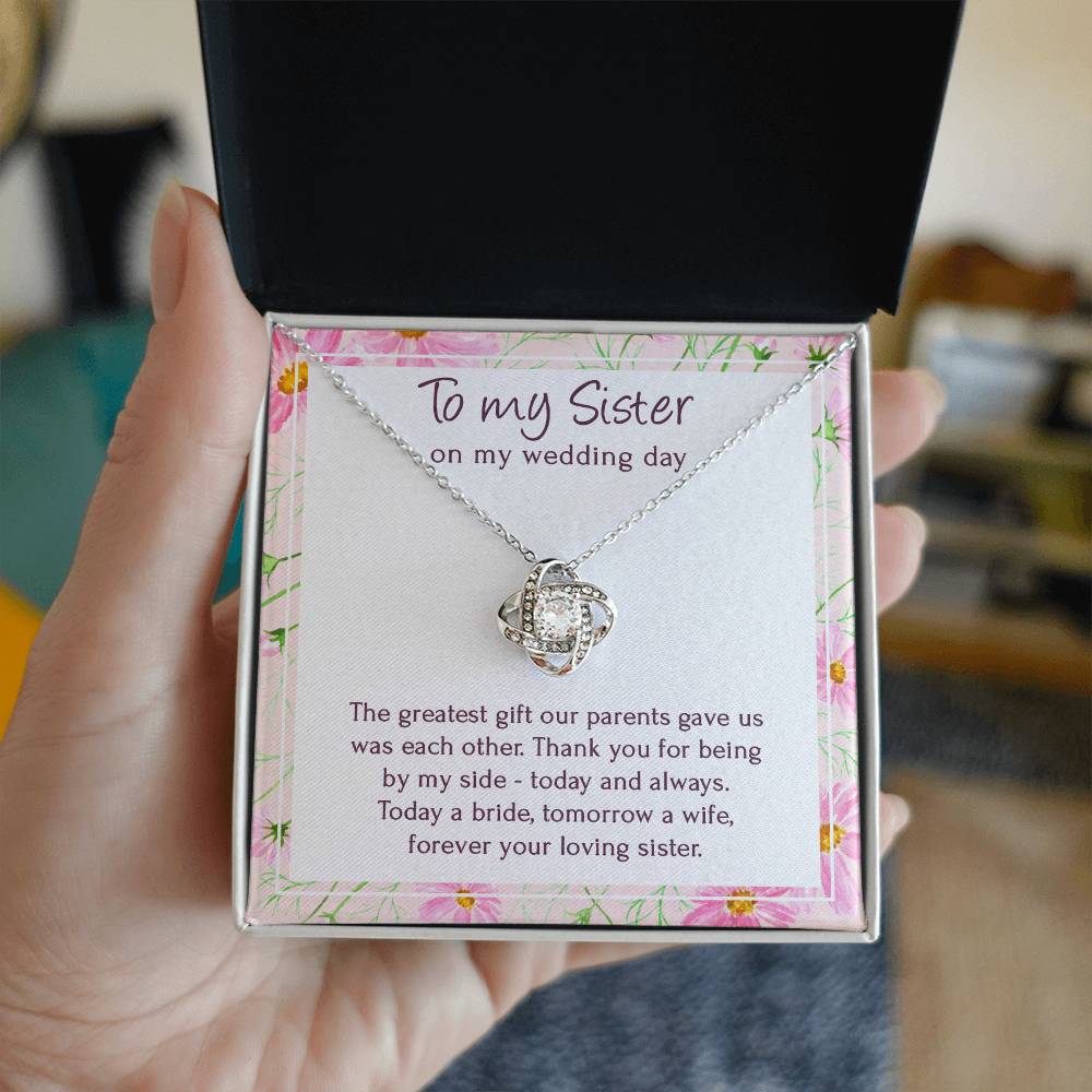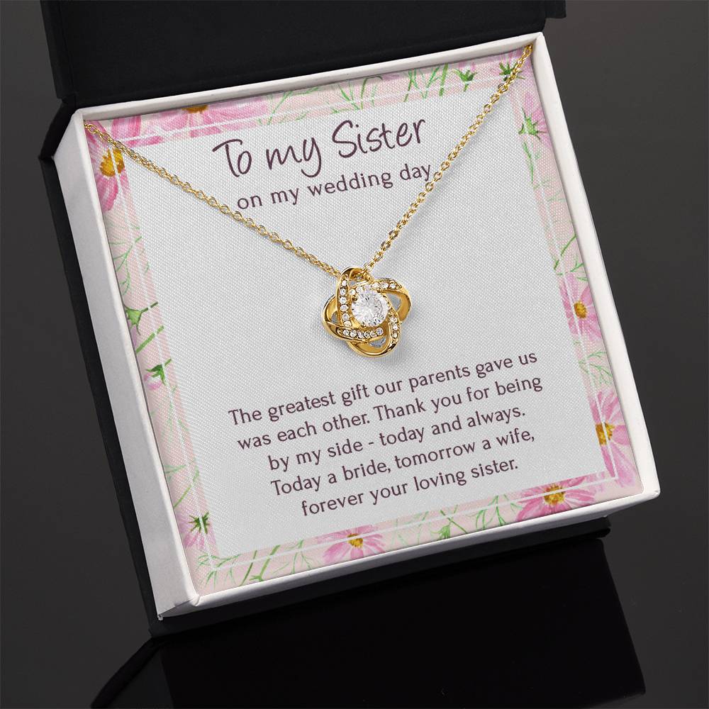 Surprise your sister with the stunning Sterling Silver Cubic Zirconia Love Knot Pendant Necklace, symbolizing an unbreakable bond. This elegant piece, available in 14k white gold or 18k yellow gold finishes, is perfect for graduation, birthday, or Christmas gifts. Comes with a premium cubic zirconia stone and adjustable chain.