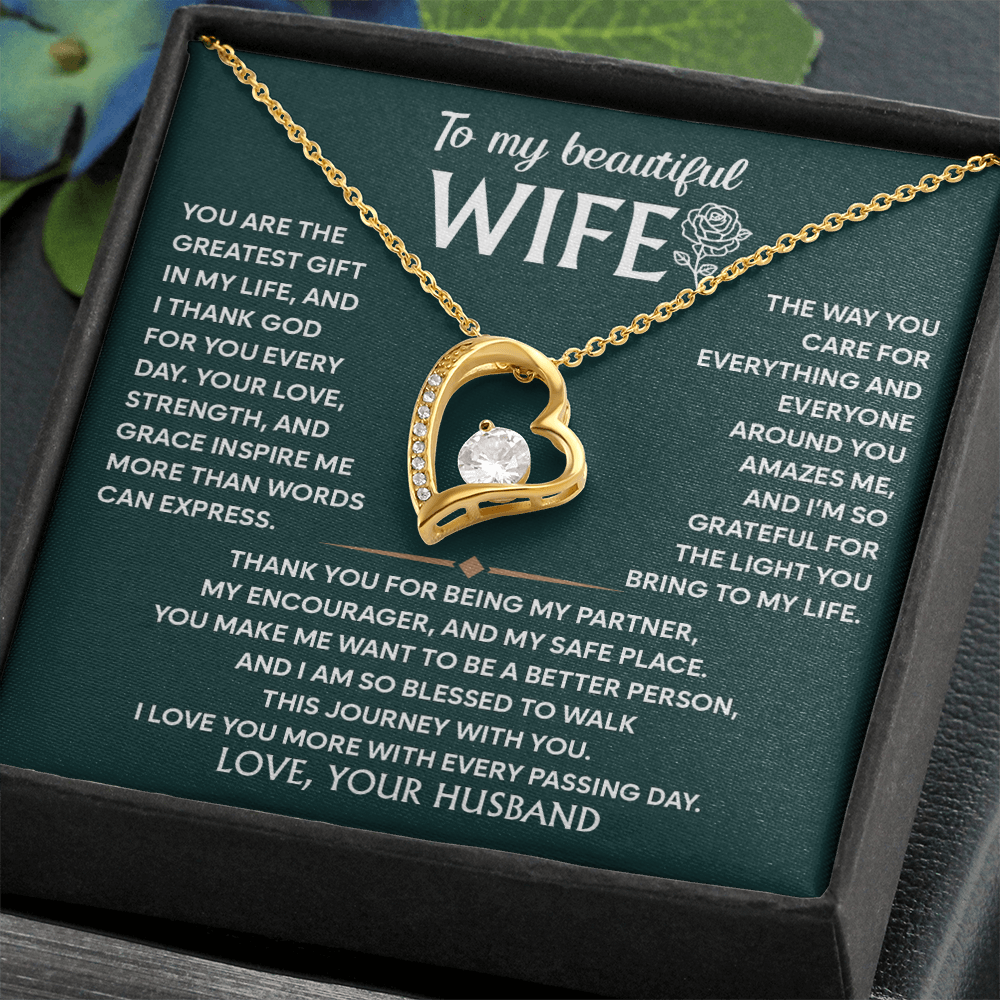 Surprise your wife with a necklace she can hold close to her heart forever. Watch her eyes light up with joy on her birthday, anniversary, or christmas morning.