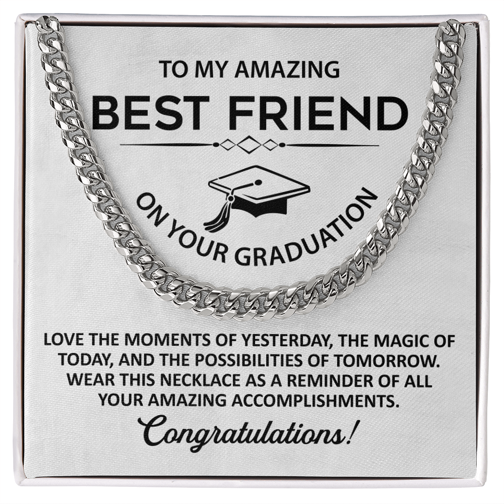 To My Best Friend - Graduation Gift for Him - Cuban Link Chain Necklace with Message Card