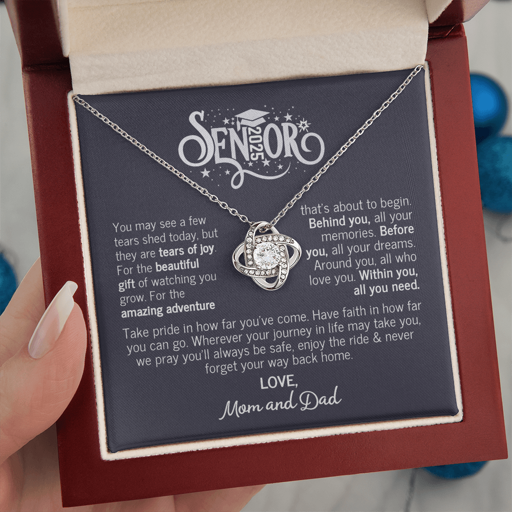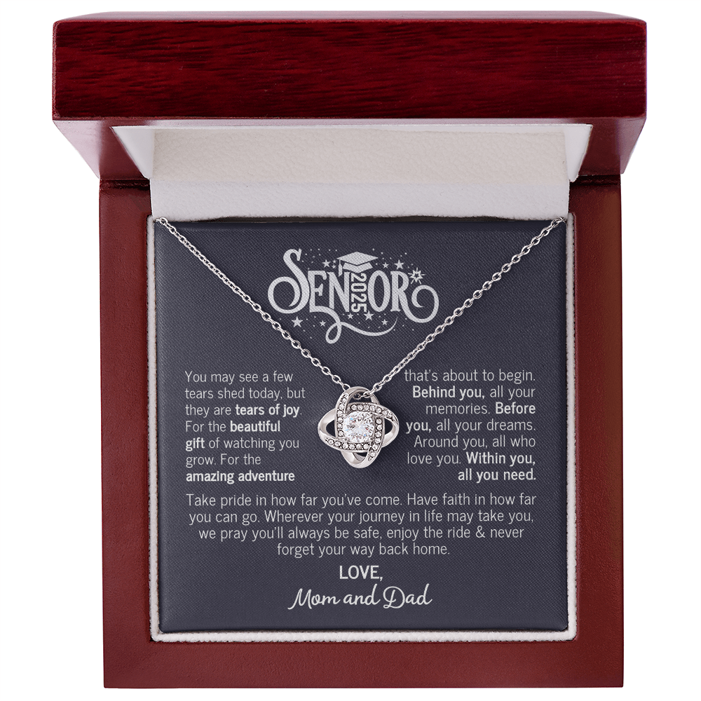 Celebrate her success with this elegant Senior 2025 Graduation Necklace – a heartfelt gift from Mom and Dad. Perfect for college or high school graduates!