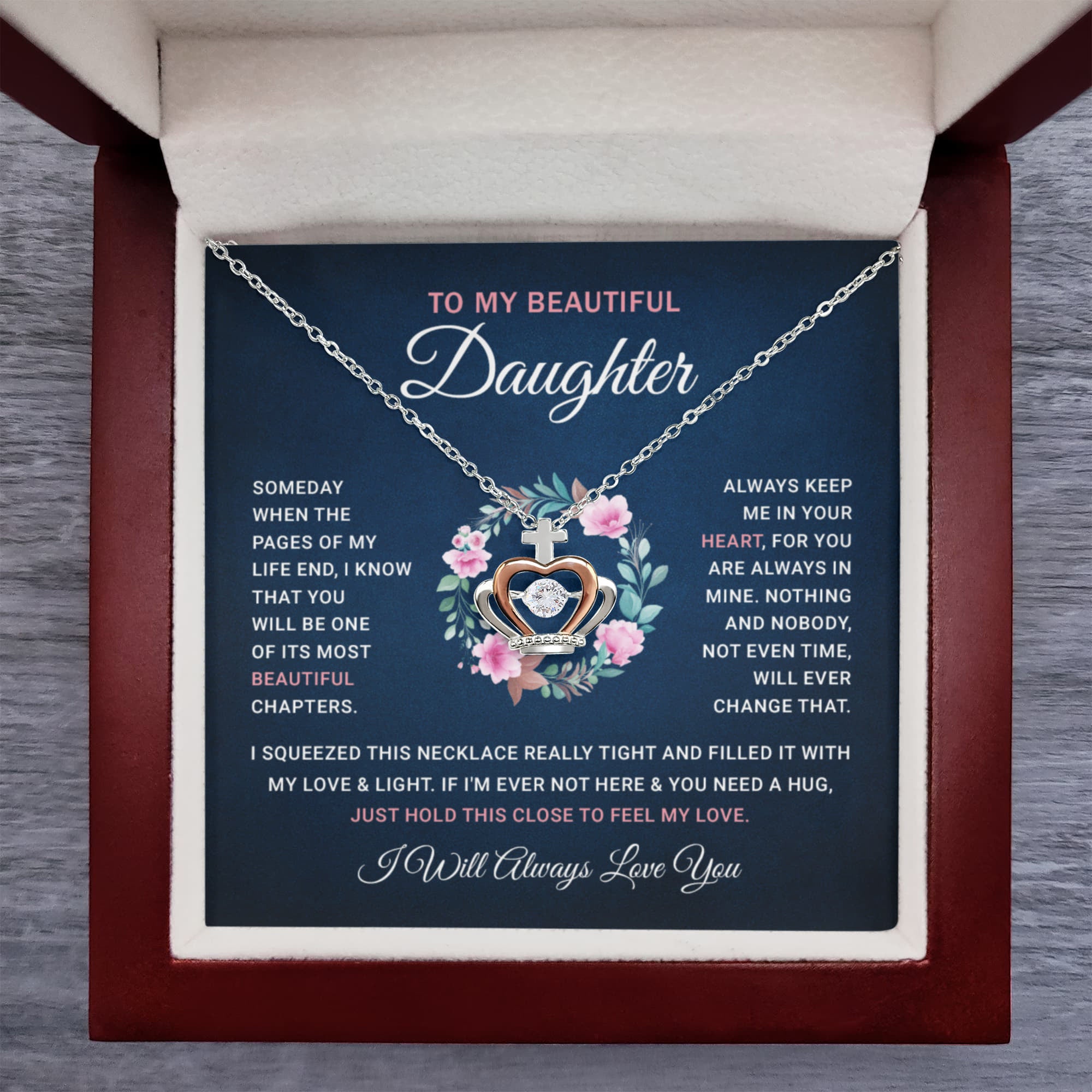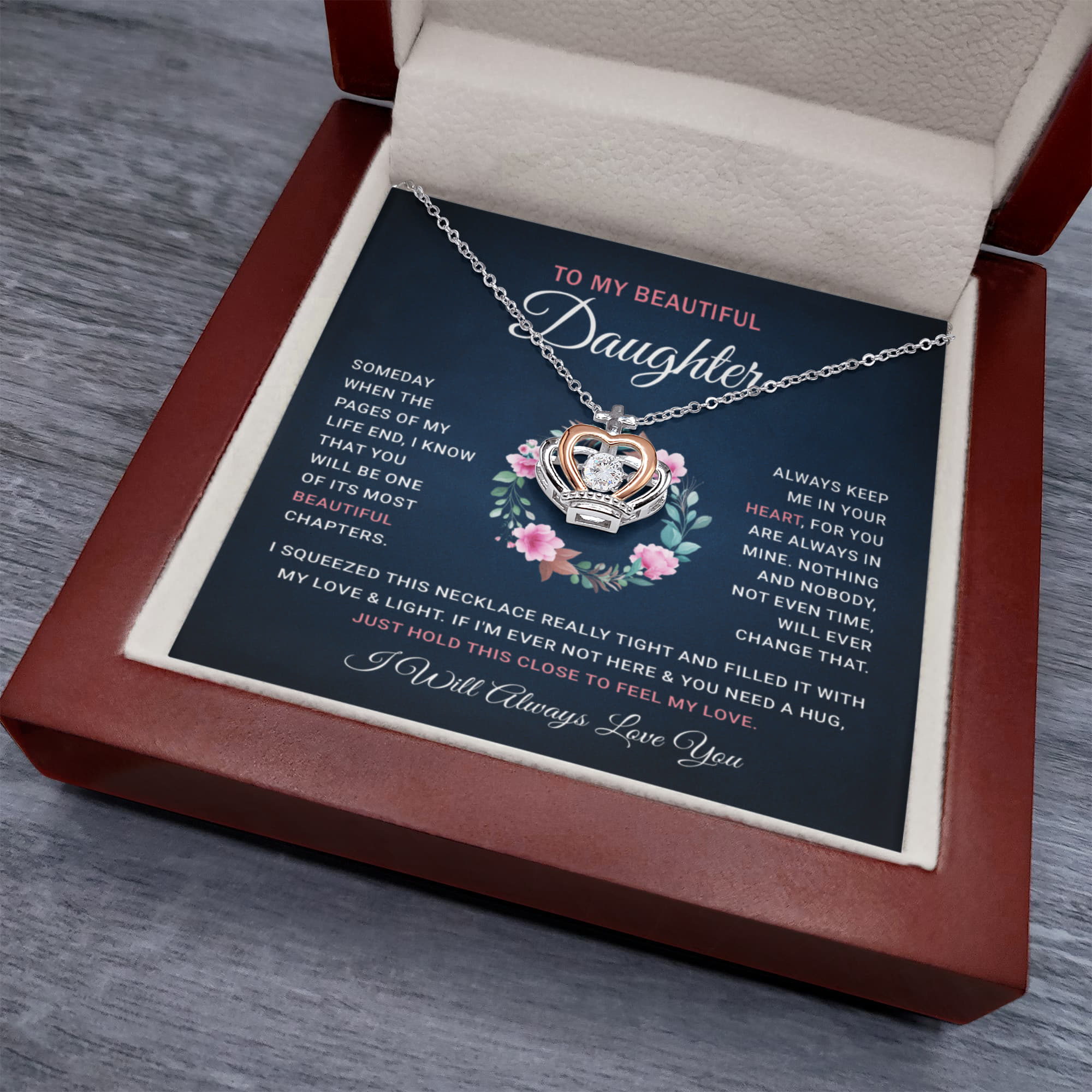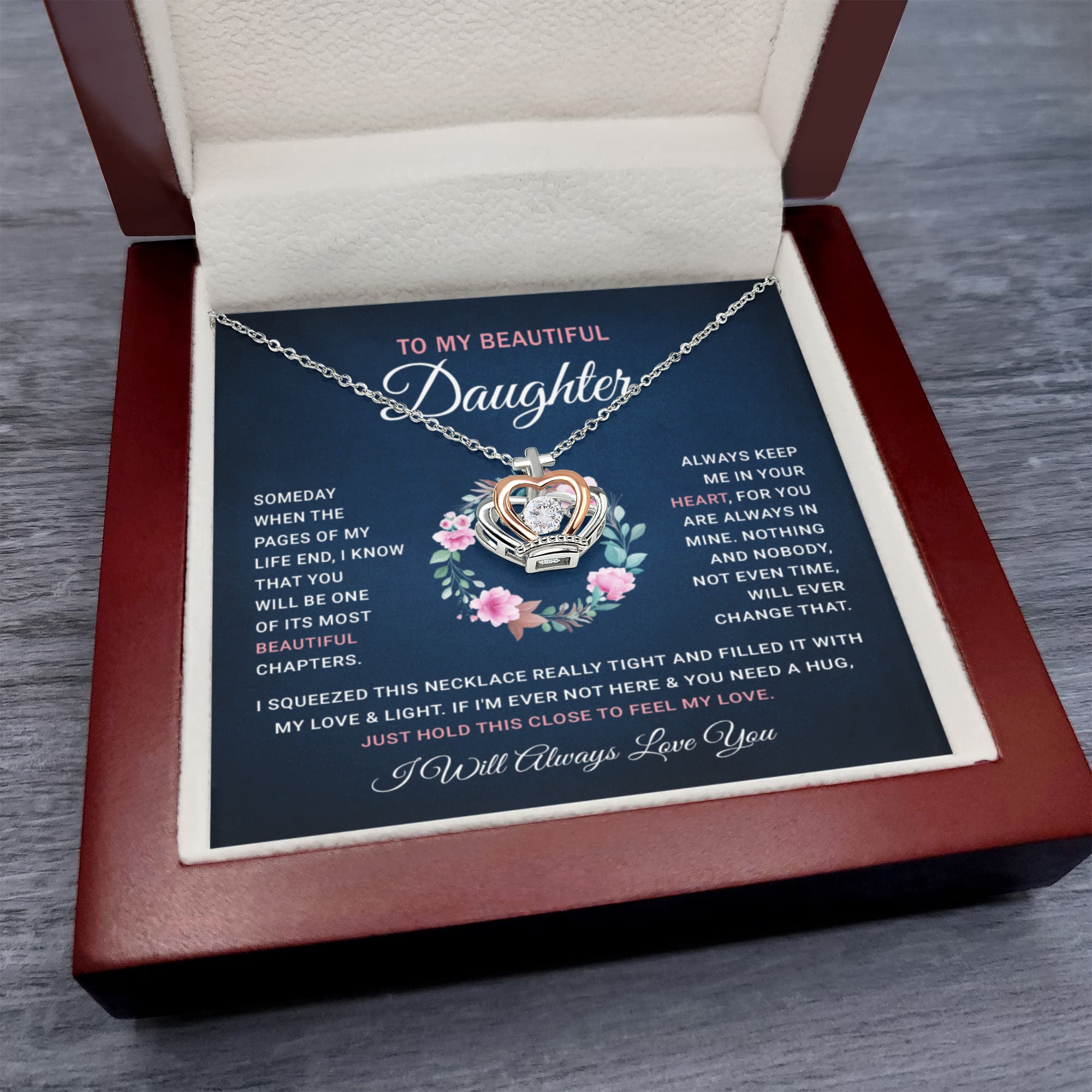 Daughter Gift From Mom, Mother Daughter Crown Pendant Necklace Birthday Graduation Christmas Jewelry Gifts For My Beautiful Daugther Adult Daughter with Message Card and Gift Box