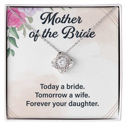 Looking for the best gift for the Mother of the Bride? This stunning Love Knot Necklace is a timeless token of appreciation, love, and gratitude. Perfect for wedding day gifting.