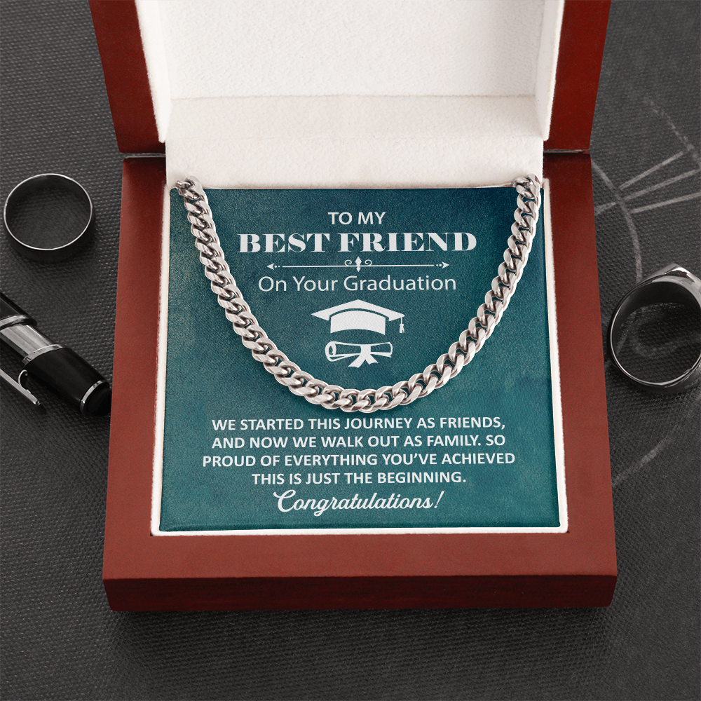 Looking for a sleek graduation gift? This Cuban Chain Necklace is a perfect choice for your best friend. Elegant, meaningful, and timeless—he’ll treasure it forever.