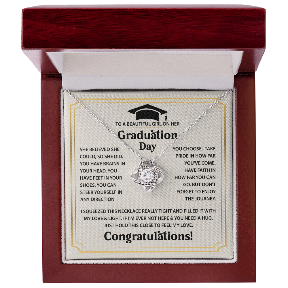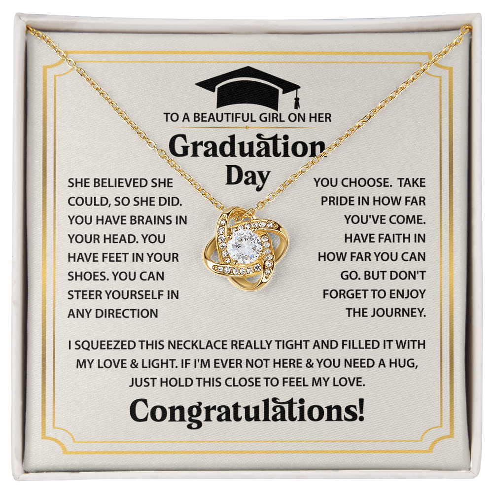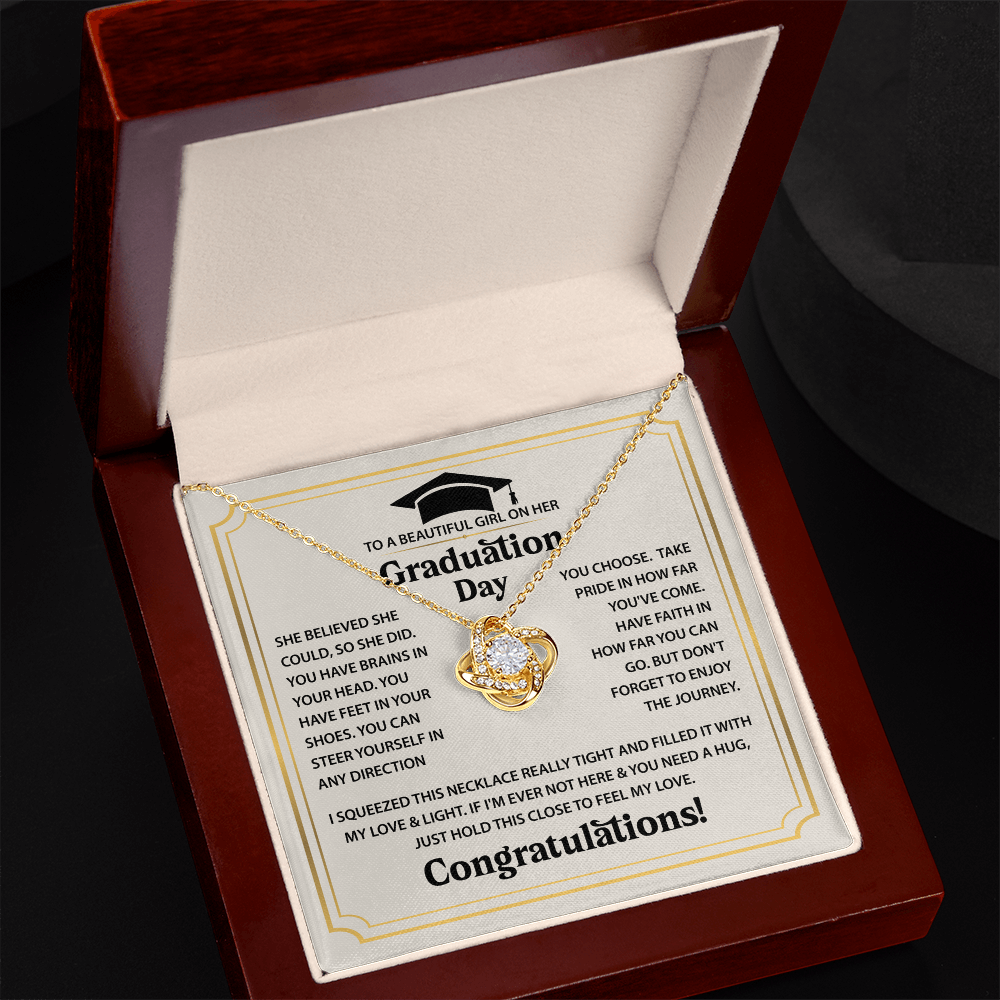 Graduation day is special gift. This Love Knot Necklace from her proud parents. The ideal Jewelry Gift for Her to remember this milestone forever. Mark your daughter’s graduation with a special jewelry gift.