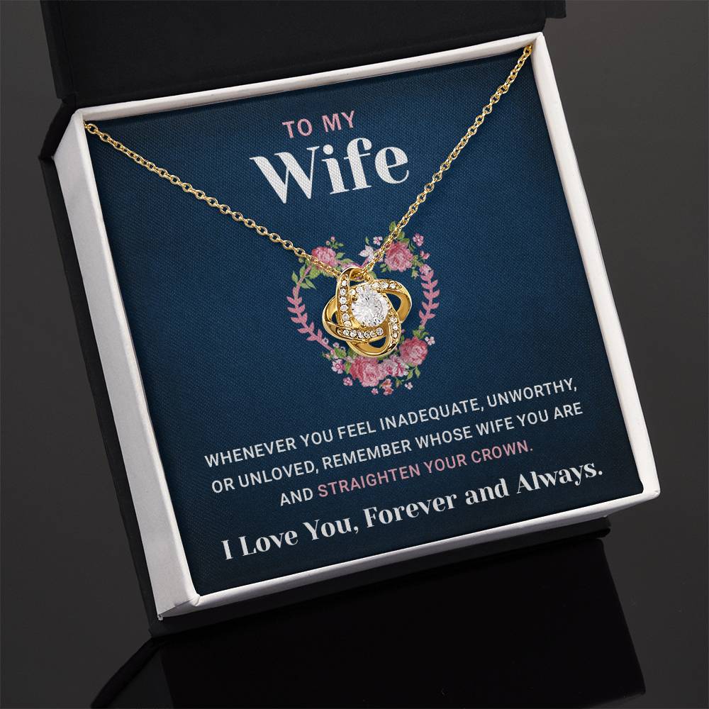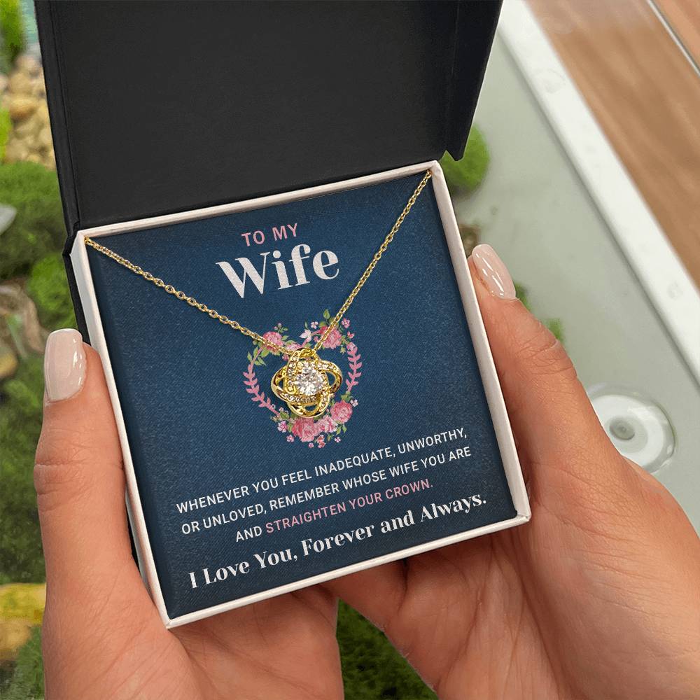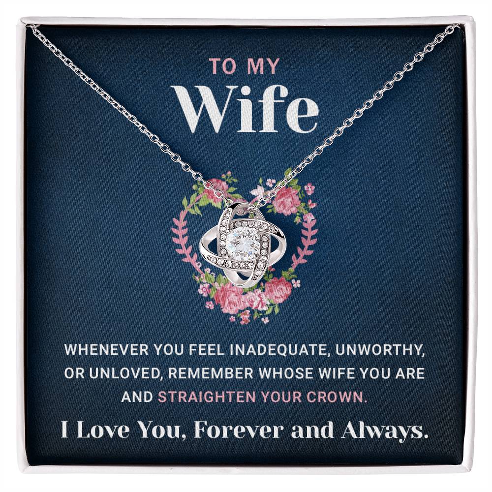 Love Knot Pendant Necklace for My Badass Wife - Valentine's Day, Anniversary, or Birthday Gift with Message Card