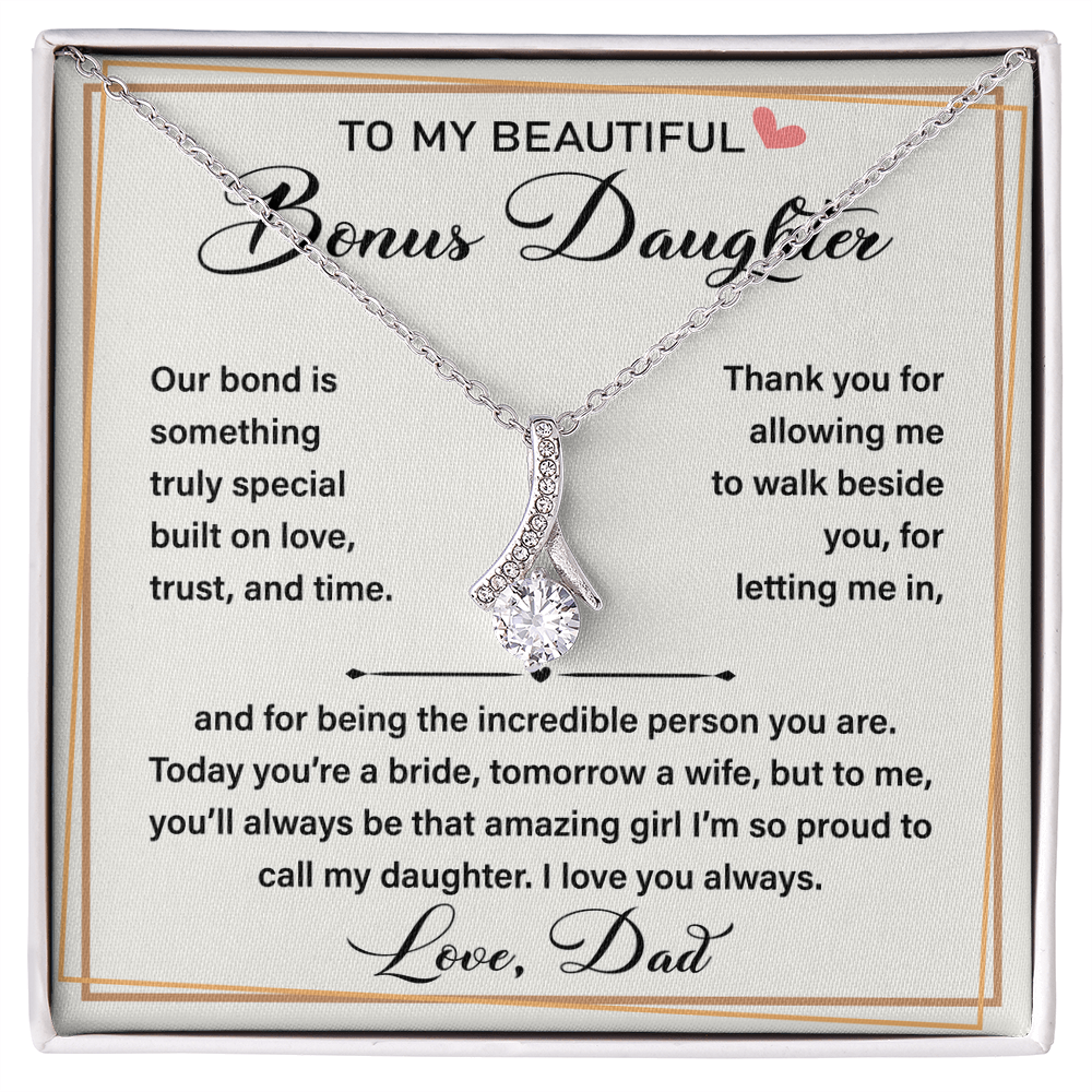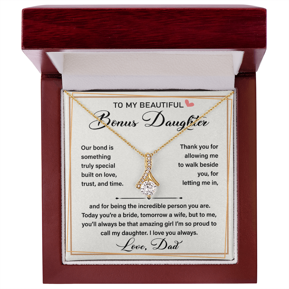 Bonus Daughter Necklace From Dad, a Heartfelt Gift of Love - Perfect for Birthday, Wedding, Graduation, or Christmas, Sentimental Jewelry She’ll Cherish