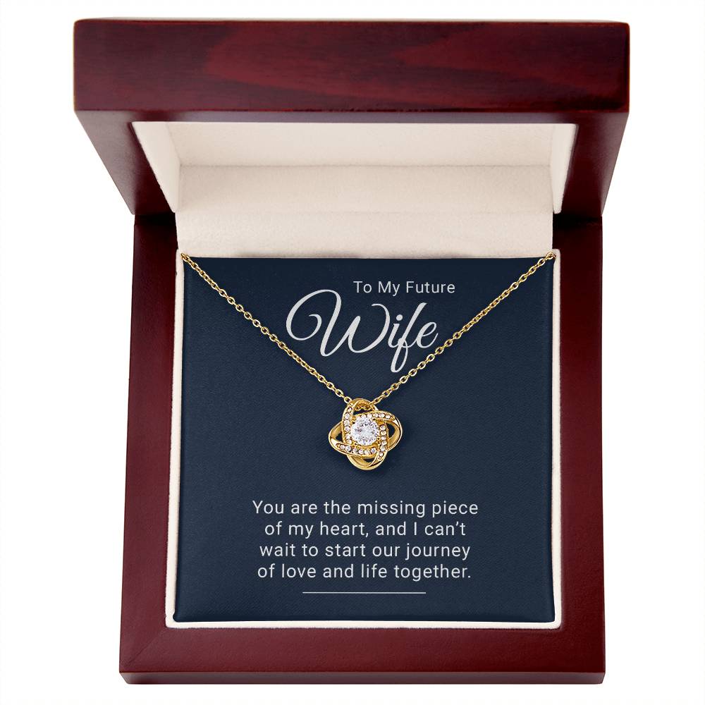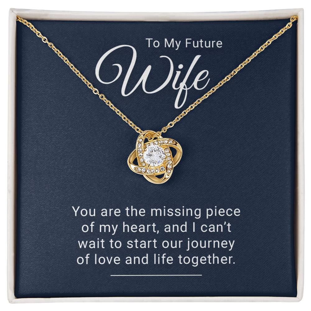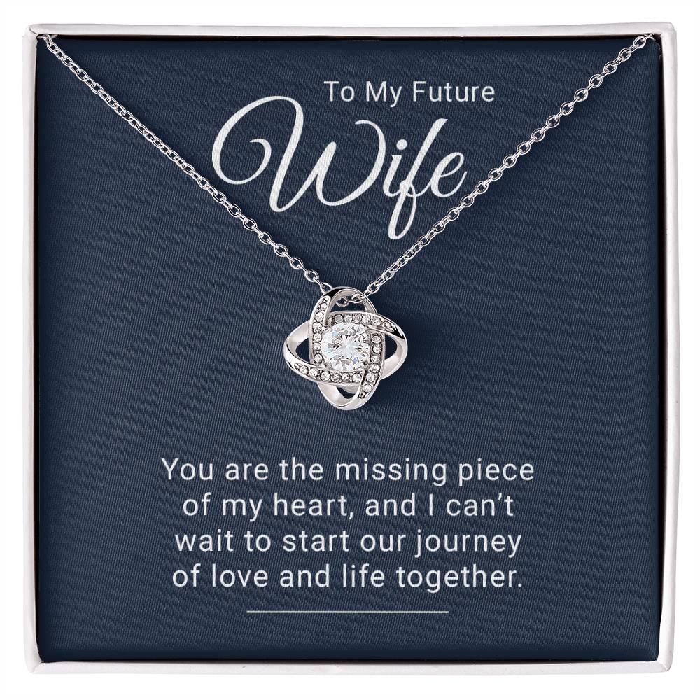 To my future wife: You are the missing piece of my heart, and I can’t wait to start our journey of love and life together. This promise necklace makes a heartfelt engagement or birthday gift, symbolizing devotion and endless love with a message she’ll treasure forever.