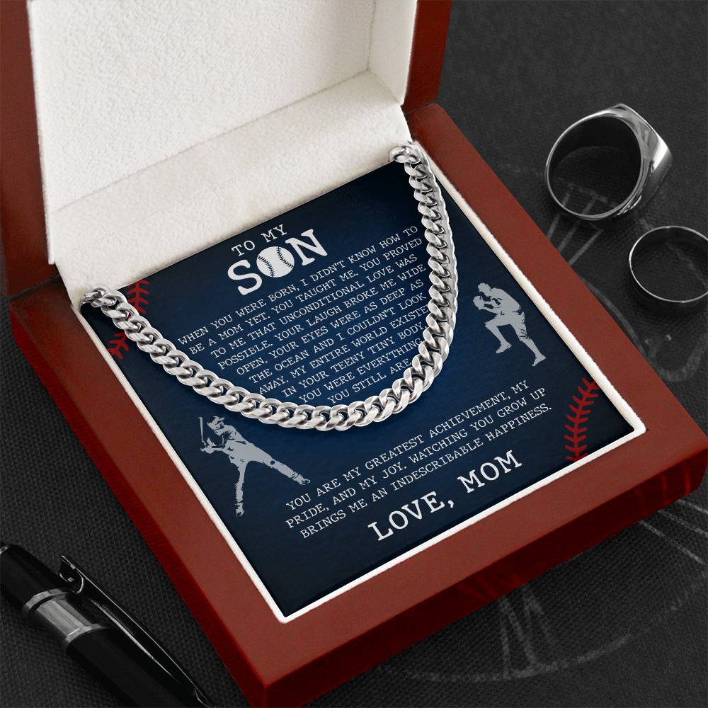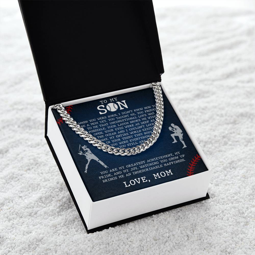 Surprise your son with this stylish Cuban chain necklace from Mom, a timeless symbol of love and connection. Perfect for birthdays, Christmas, or anniversaries, this elegant necklace is a meaningful gift that he'll treasure forever.