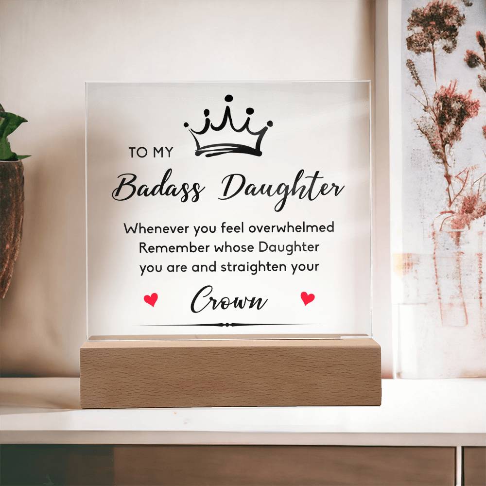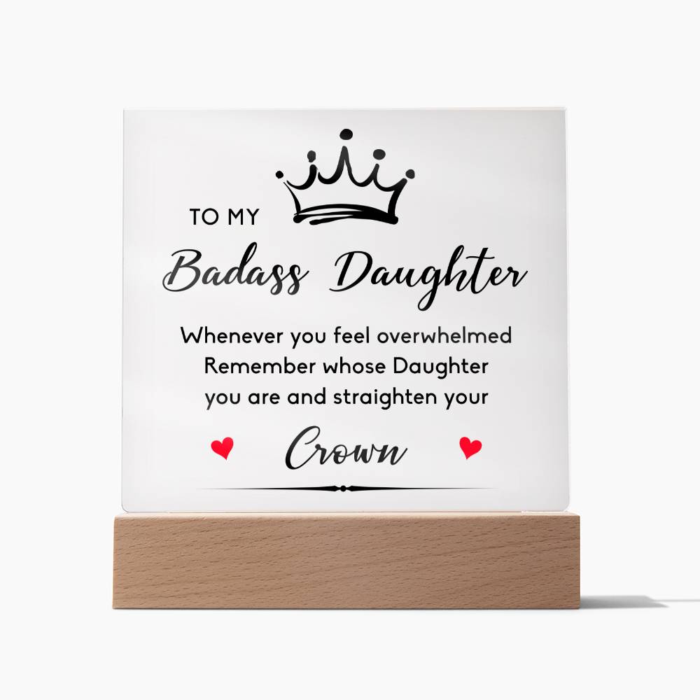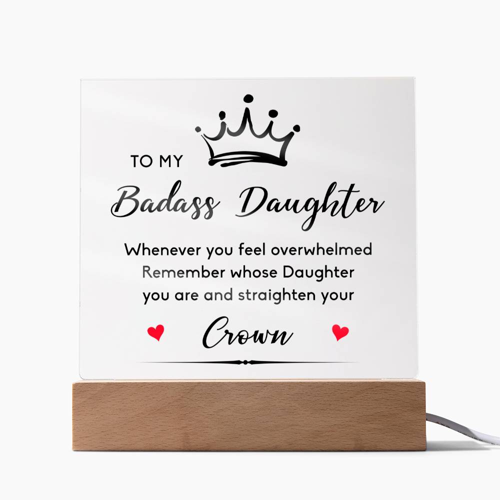 To My Badass Daughter Acrylic Square Plaque LED Lights Daughter gift from mom