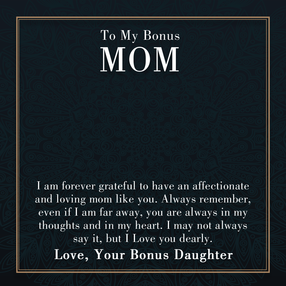 To My Bonus Mom Alluring Beauty Necklace, Heartfelt Birthday & Mother's Day Gift to Show Your Love and Appreciation from Daughter