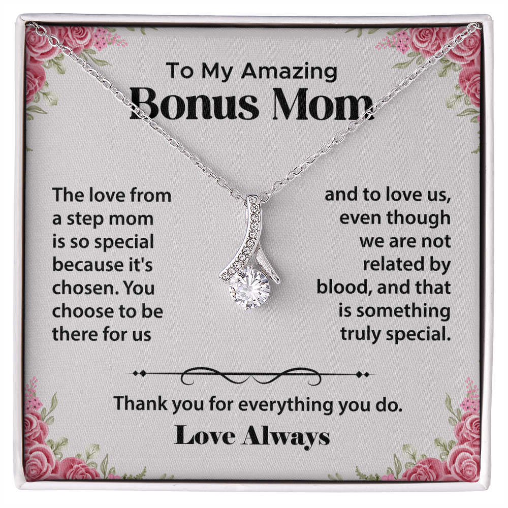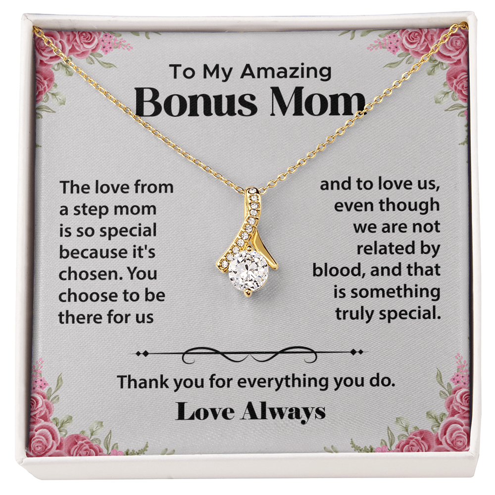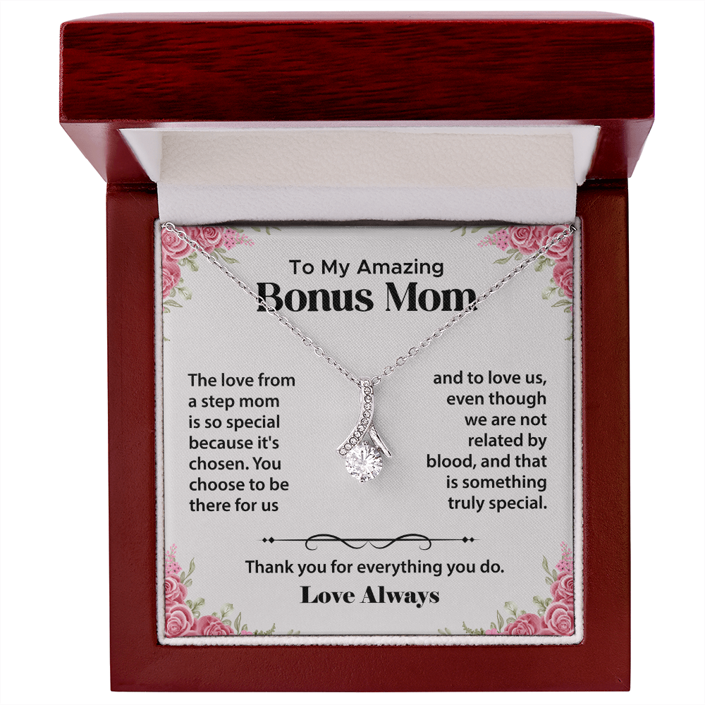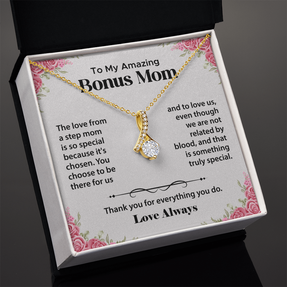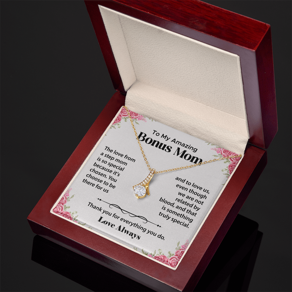 To My Bonus Mom Gifts from Daughter, Step Mom Gifts from Son - Alluring Beauty Necklace, Jewellery Gifts