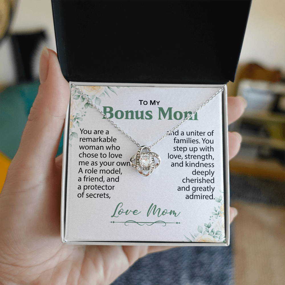 To My Bonus Mom Necklace, Best Gift for Bonus Mom - Love Knot Jewelry for Her, Mom Jewelry