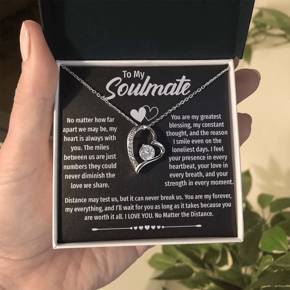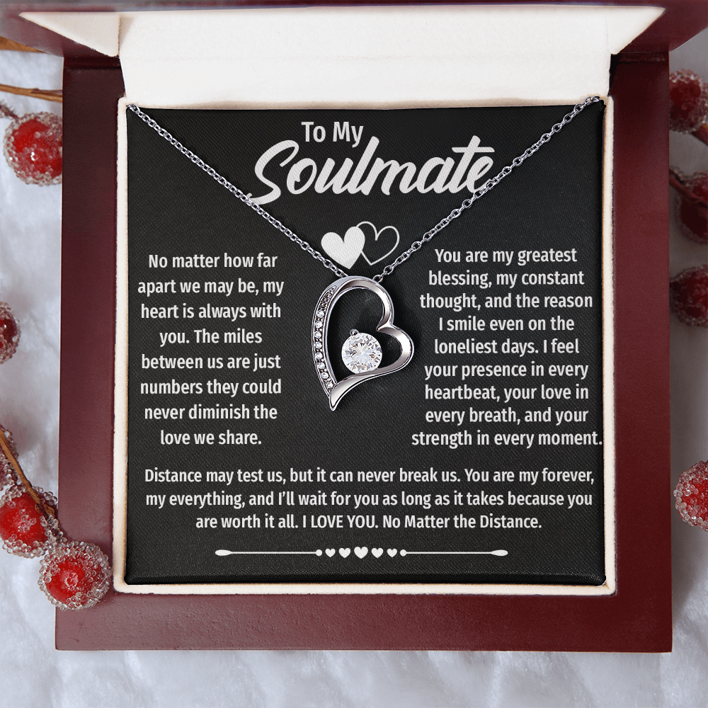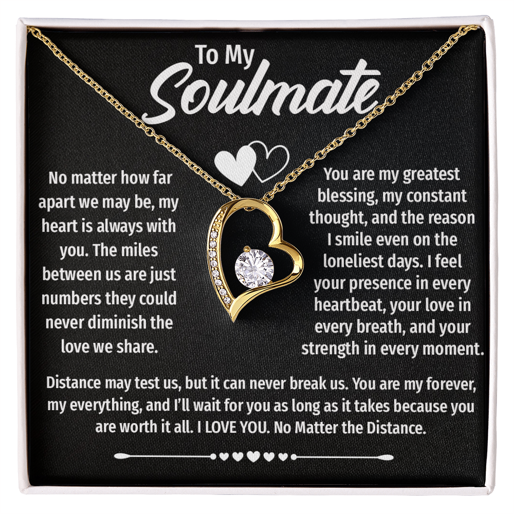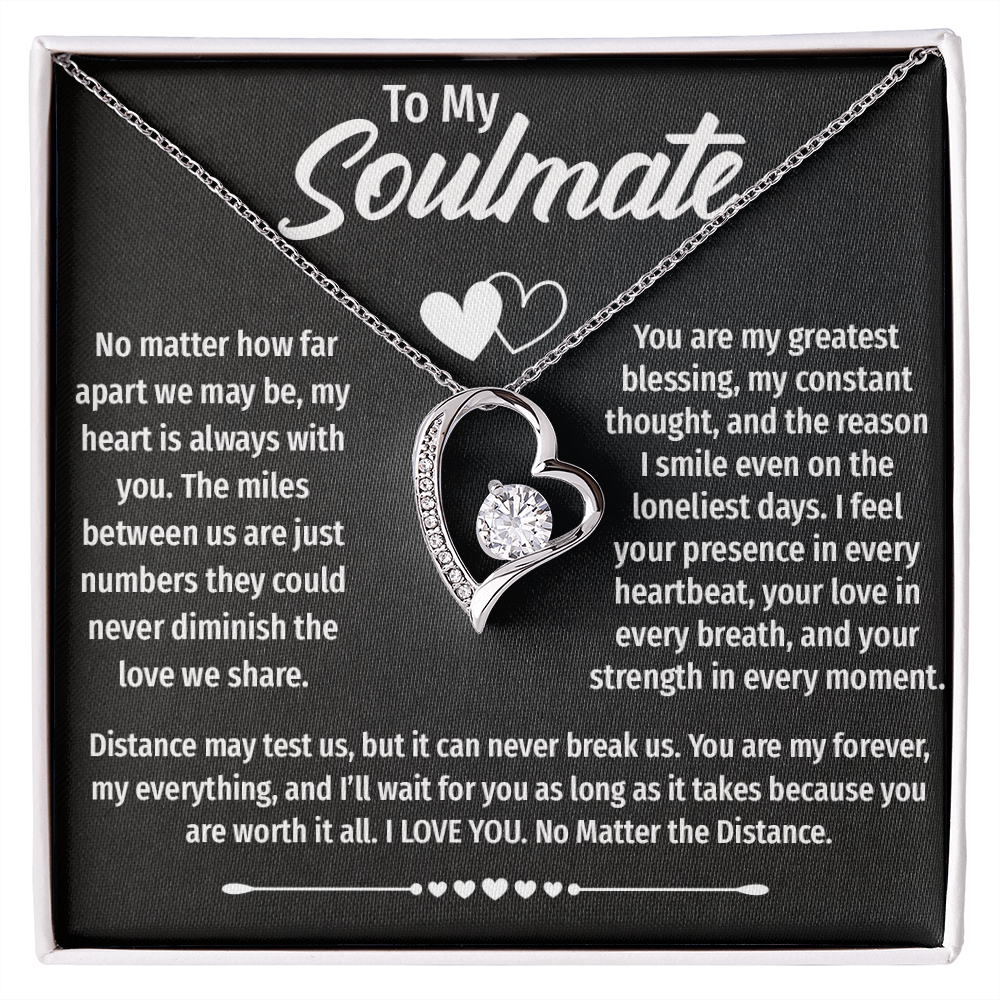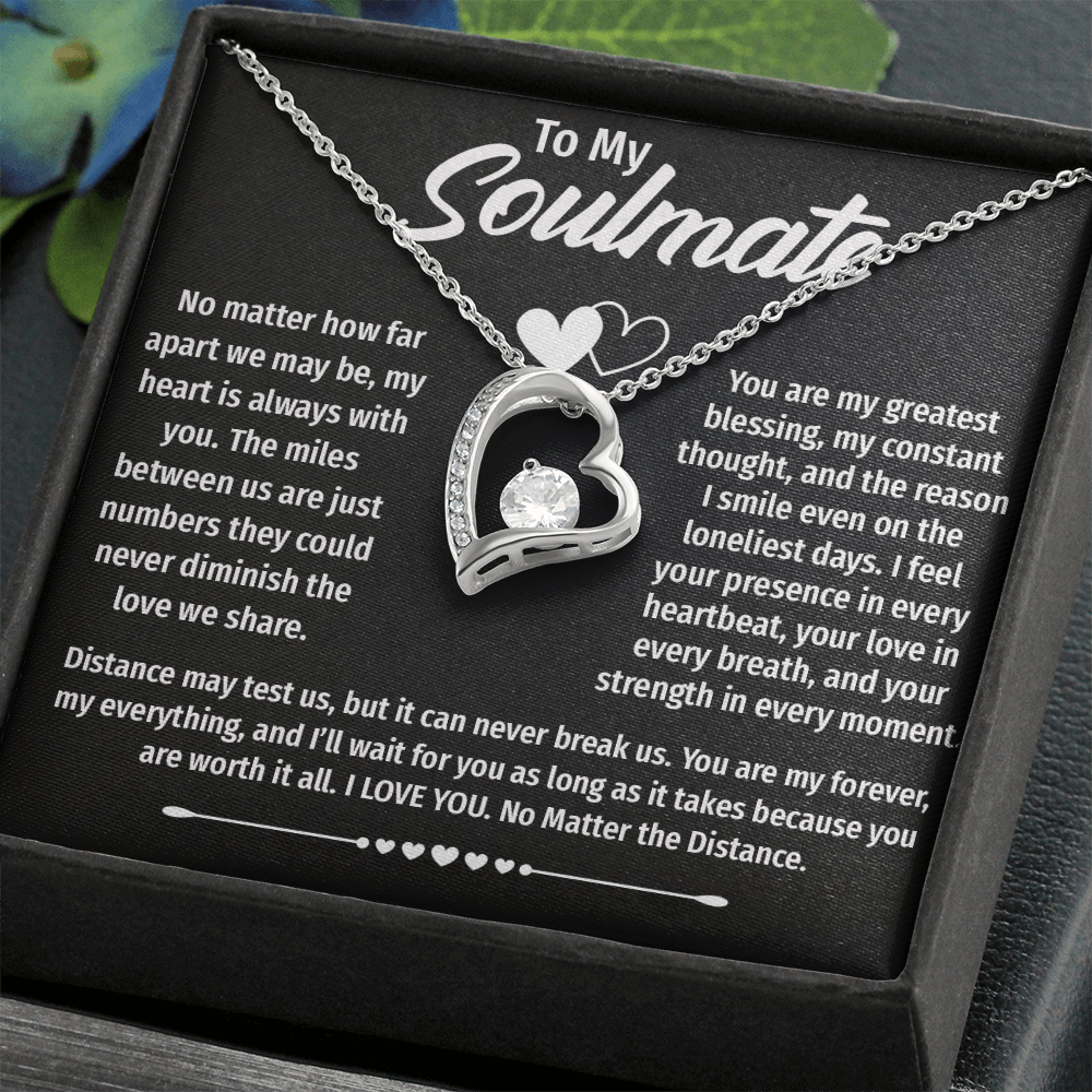 To My Soulmate – No Matter the Distance, Heartfelt Love Necklace to Show Your Unbreakable Bond, Perfect Long-Distance Relationship Gift for Him or Her