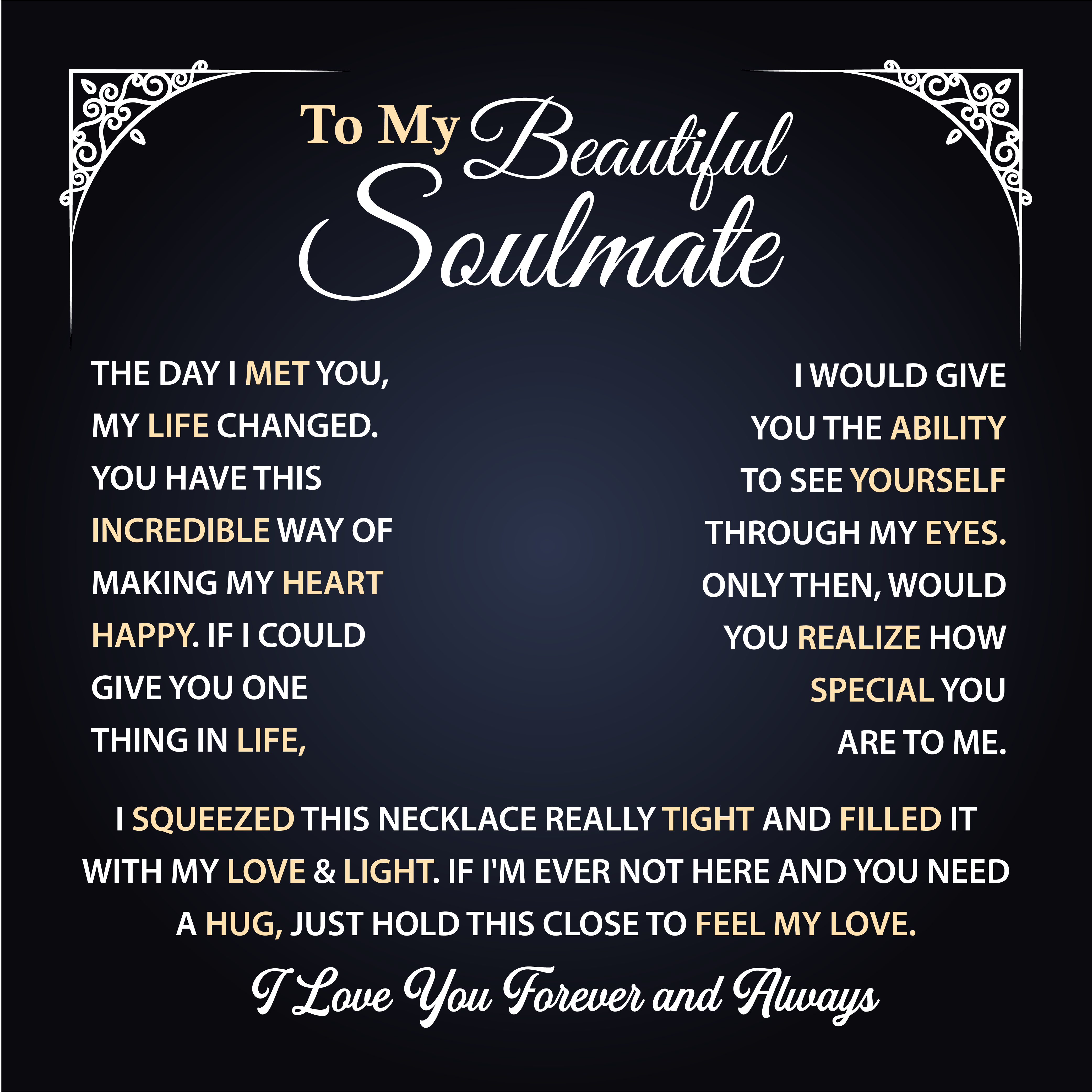 Forever Love Necklace Gift for My Beautiful Soulmate, Women's Jewelry