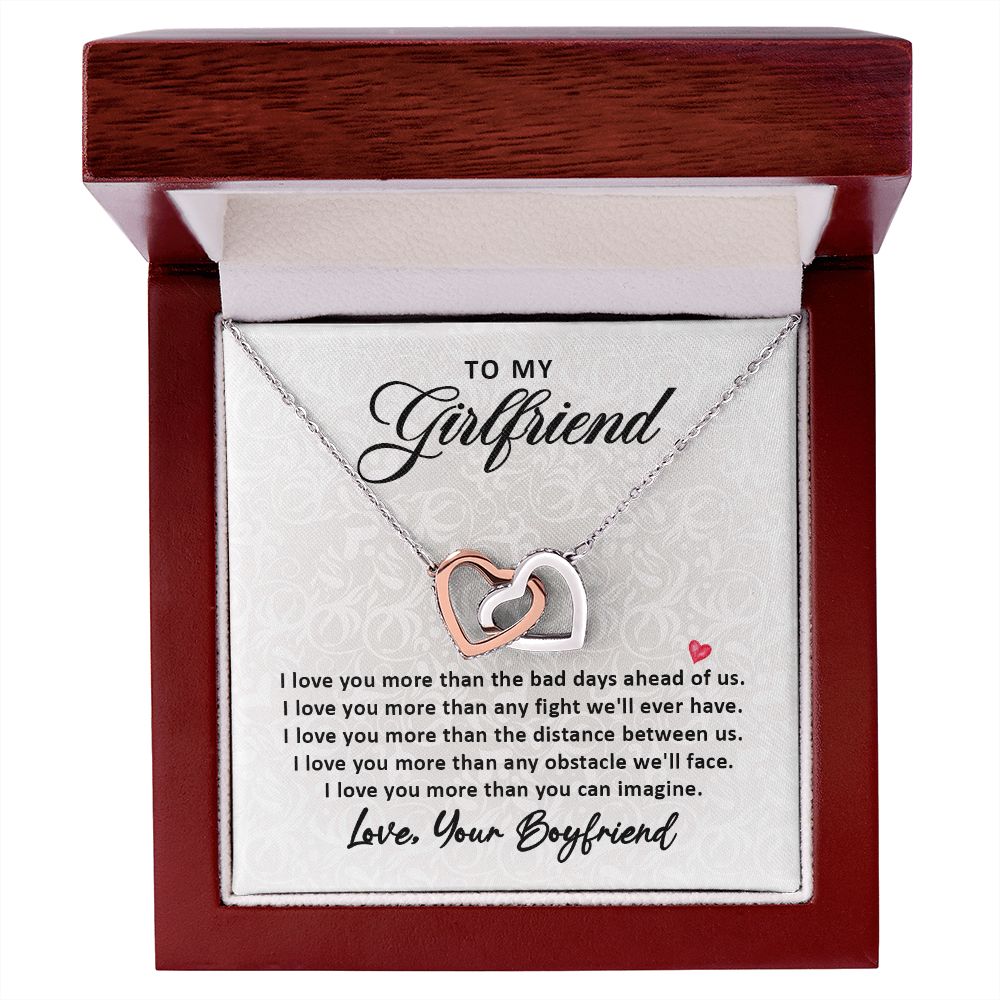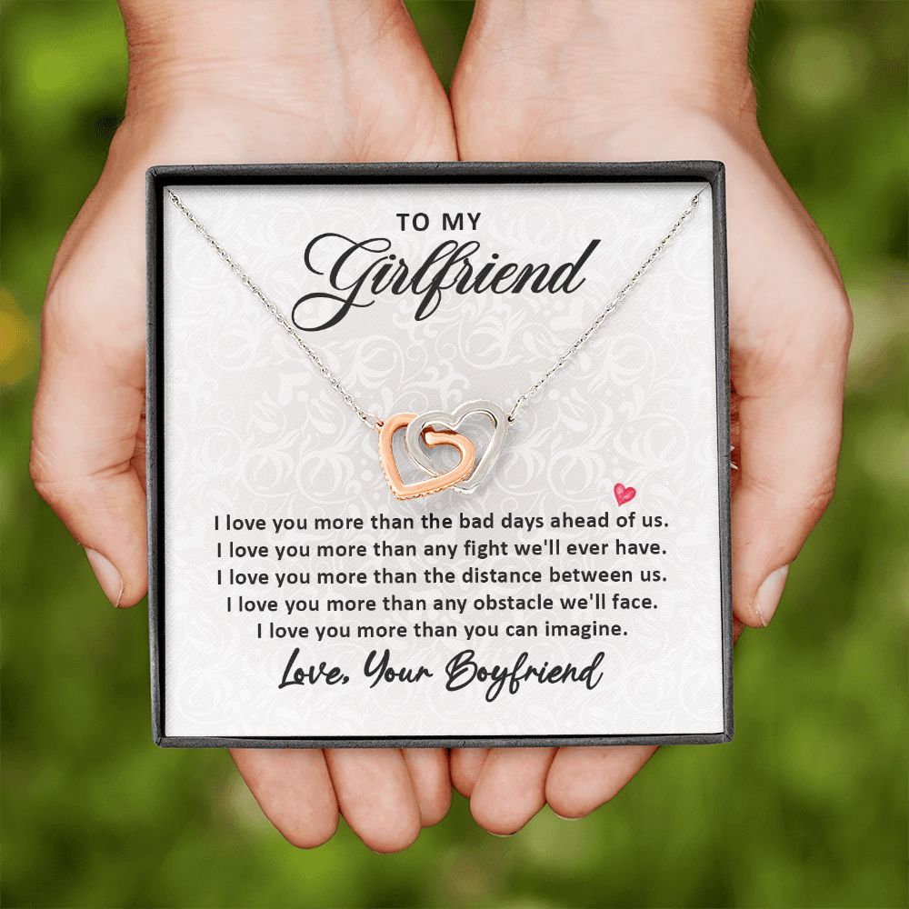 To My Girlfriend Personalized Interlocking Heart Necklace Gift She'll Never Forget