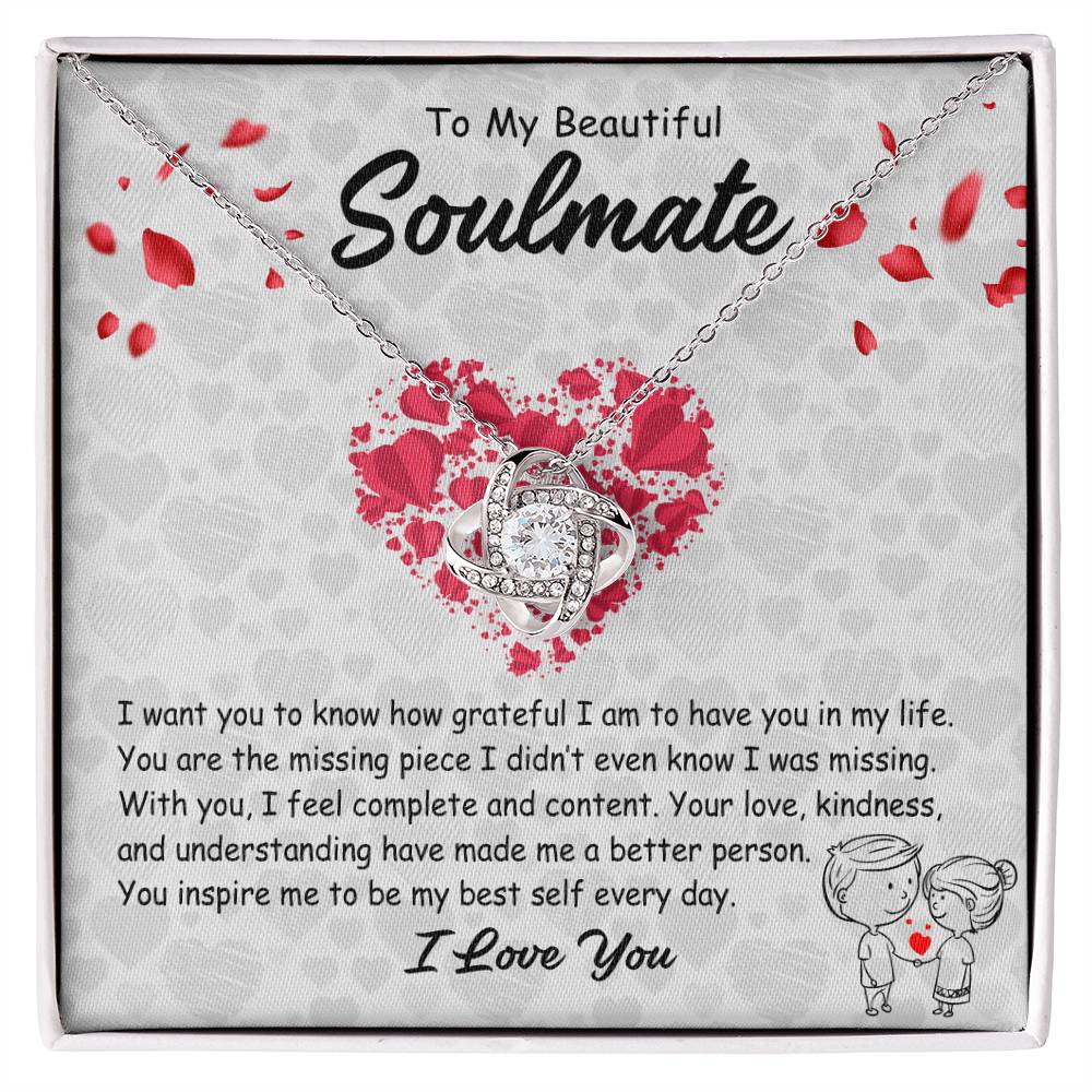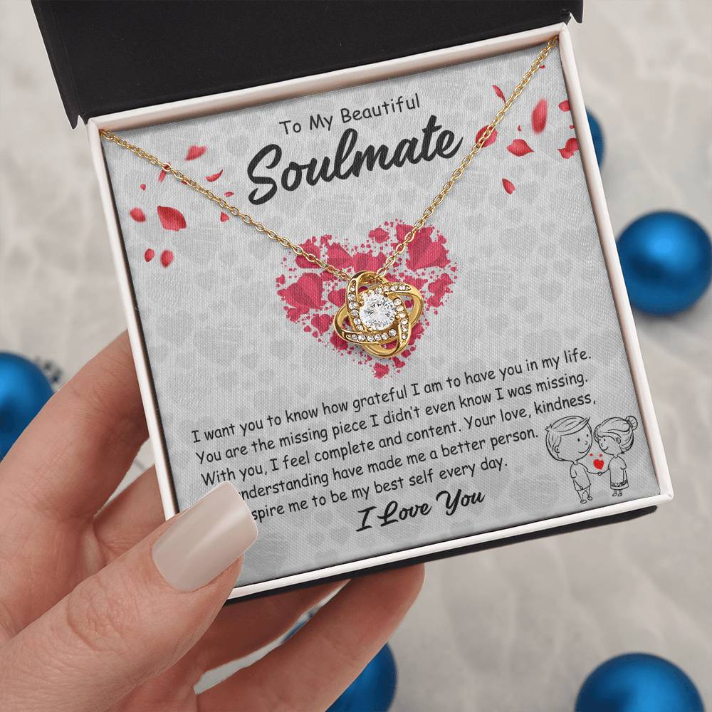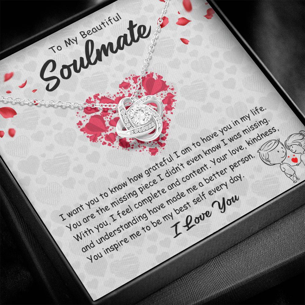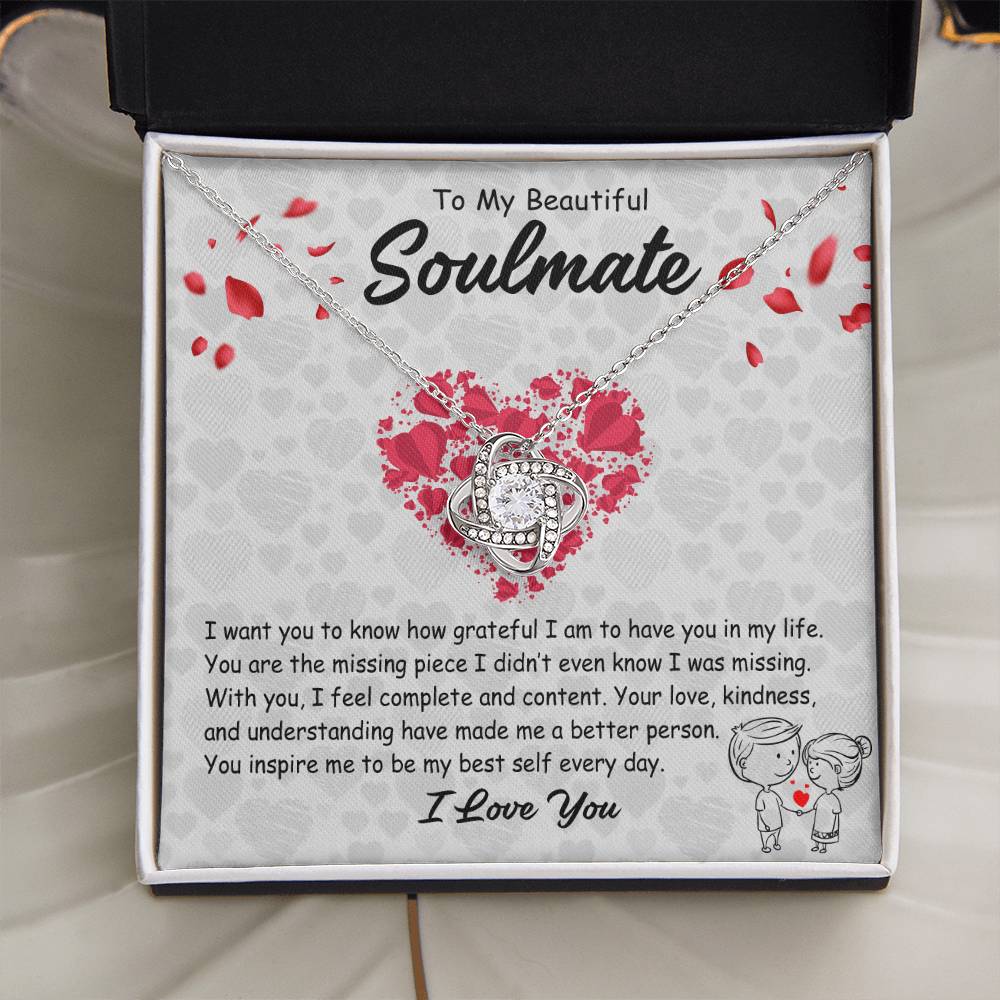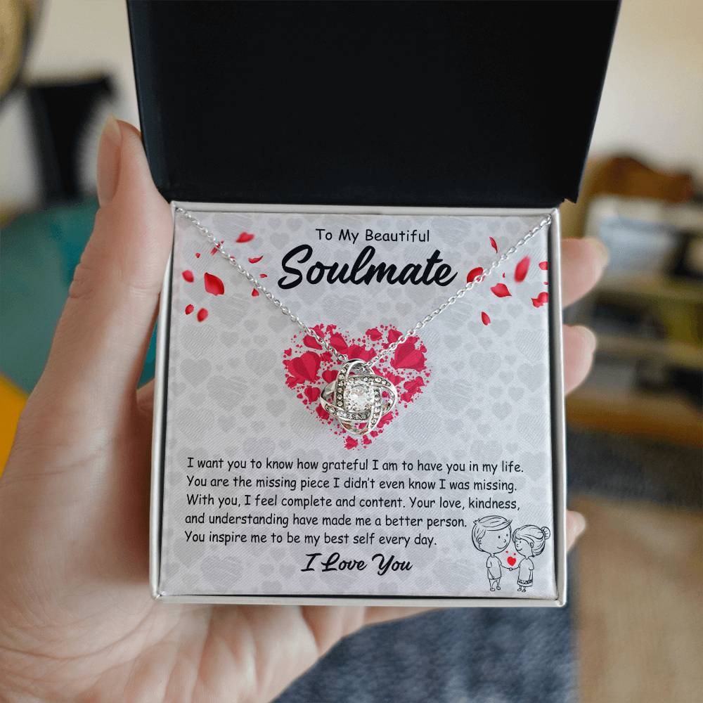 To My Soulmate Necklace for Women - Anniversary Romantic Gift for Girlfriend or Wife - Love Knot Stainless Steel Necklace with Message Card and Gift Box
