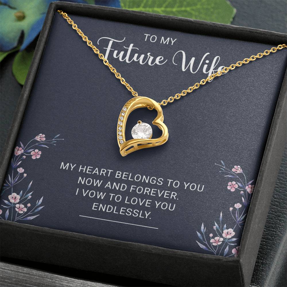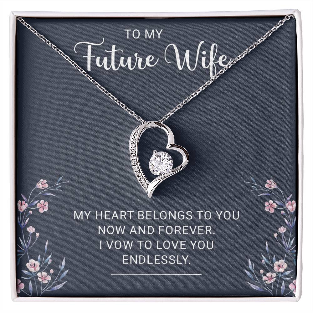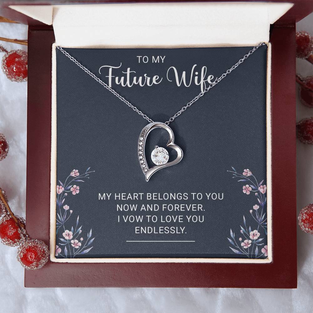 To my future wife, my heart belongs to you now and forever. I vow to love you endlessly. This Forever Love Necklace is a meaningful gift for a future wife, fiancee, or girlfriend, perfect for engagements, anniversaries, or special occasions, symbolizing unwavering love and commitment.