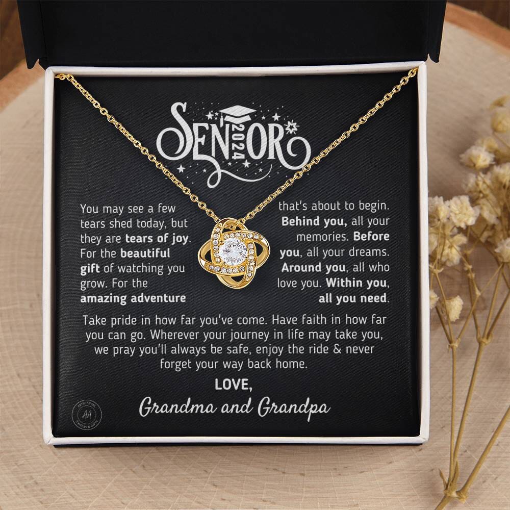 Imagine her reaction receiving this beautiful Love Knot Necklace. Representing an unbreakable bond between two souls, this piece features a beautiful pendant embellished with premium cubic zirconia crystals. Surprise your Graduating Senior class of 2024 with this gorgeous gift today!