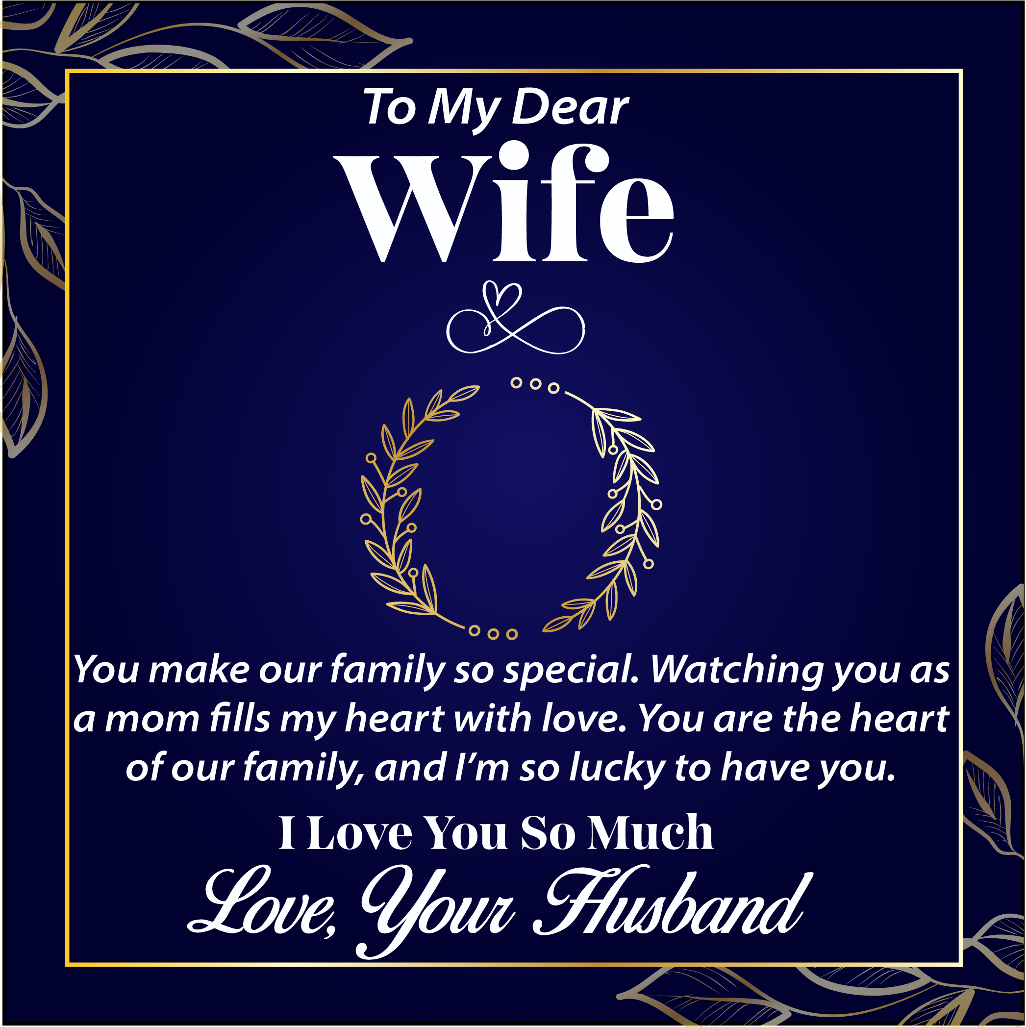 Celebrate the love and care your wife brings to your family with this beautiful keepsake. The Love Knot necklace, paired with a heartfelt message, symbolizes her strength and the bond you share. A thoughtful gift from a husband to honor her as a devoted wife and loving mother.