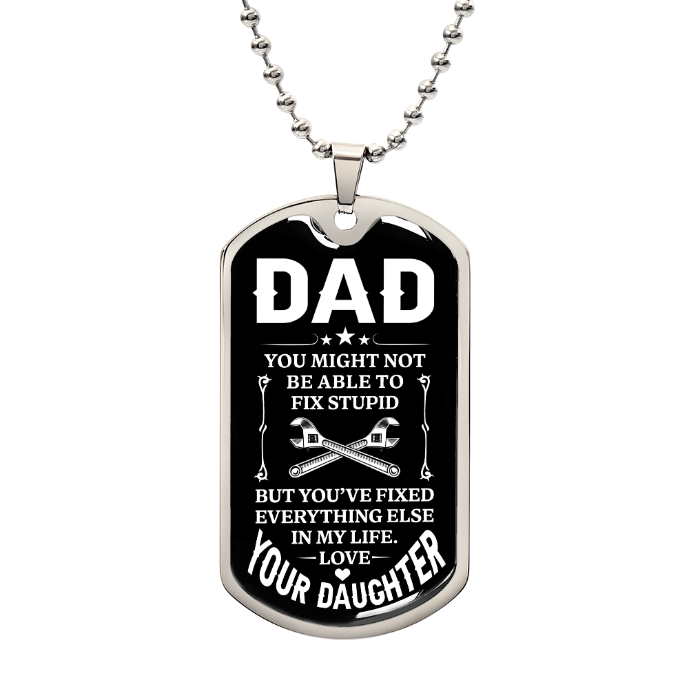 Honor your Mechanic Dad with this meaningful dog tag necklace. A perfect gift from son or daughter for birthdays, Father’s Day, or any special moment to appreciate his dedication.