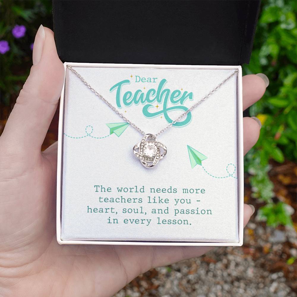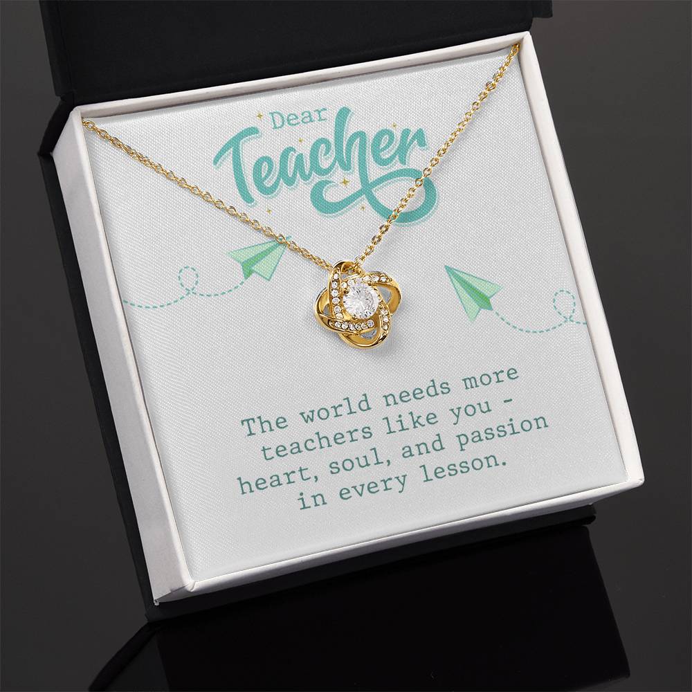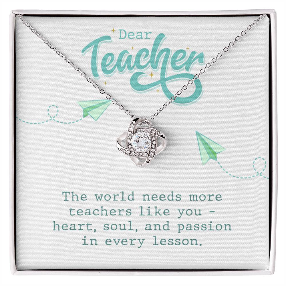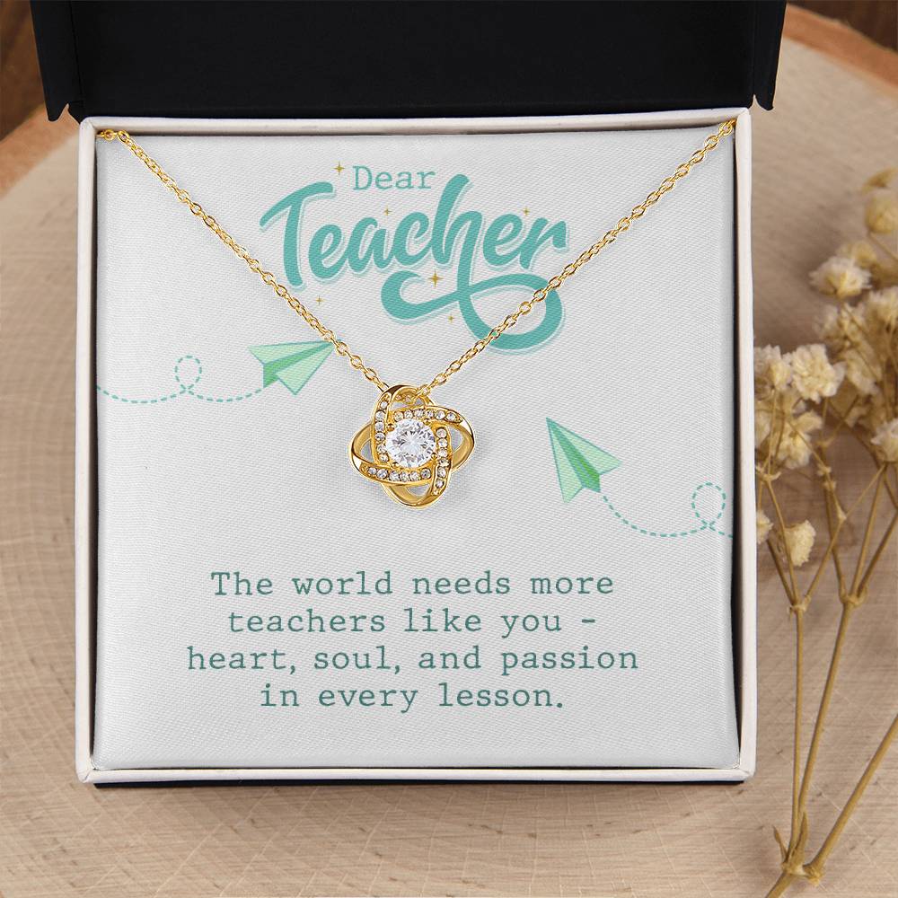 Surprise your teacher with a stunning Love Knot Necklace, featuring premium cubic zirconia crystals and available in 14k white or 18k yellow gold over stainless steel. A heartfelt gift that symbolizes the unbreakable bond between mentor and student.