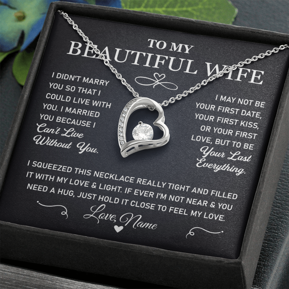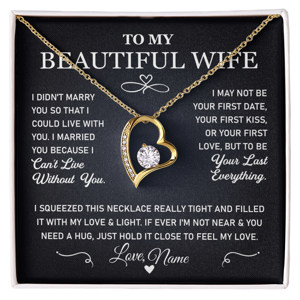 Surprise your wife with a romantic necklace gift from her husband. Perfect for anniversaries or Valentine’s Day. Comes with a custom message card & gift box.