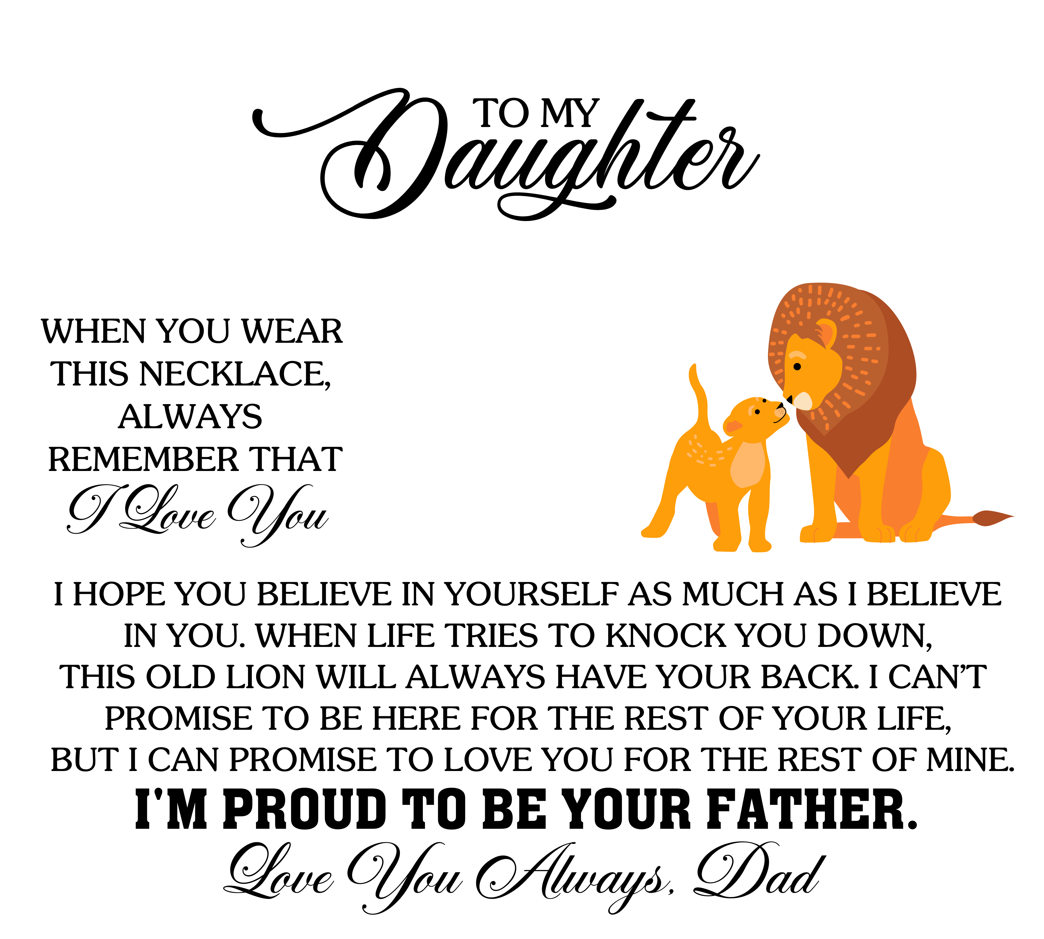 Show your Daughter how much she means to you with this necklace. A heartfelt gift for her birthday, wedding, or Christmas to treasure forever.